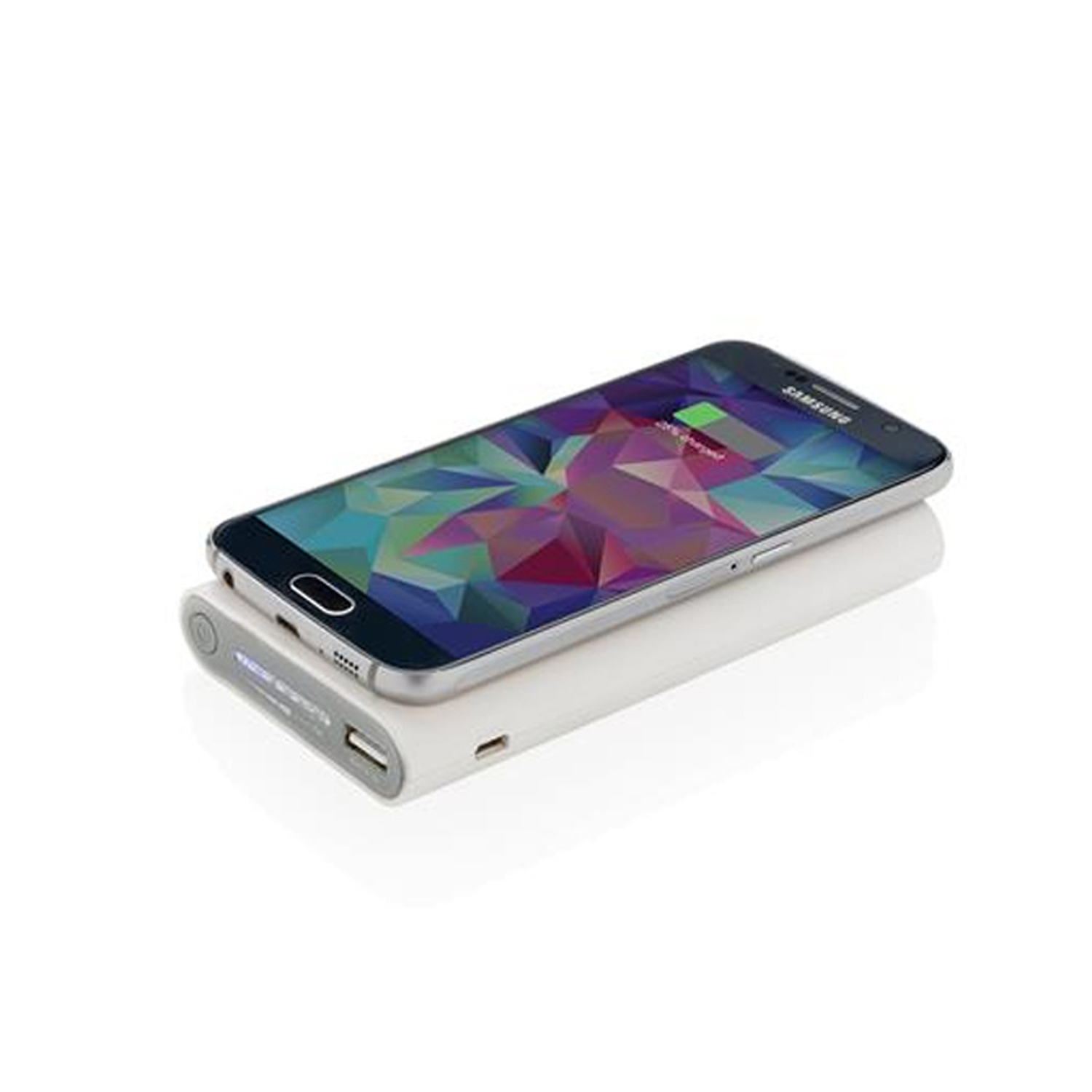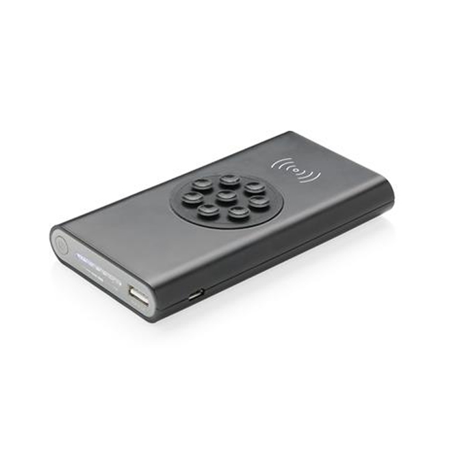 Die Powerbank mit der neusten Technologie des Ladens: Type C und “wireless-charging”. Die 8.000 mAh Lithium Batterie der Powerbank kann über Micro-USB und den Type C Port geladen werden. Mit Saugnäpfen um Ihr Smartphone beim Laden an Ort und Stelle zu halten. Inkl. Batterie-Ladestandsanzeige. Aus ABS mit Saugnäpfen aus Silikon. Output 5V/2.1A, “wireless output”: automatische Regulierung durch Ihr Smartphone. Wireless- Charging ist kompatibel mit Android Smarphones der letzten Generation, iPhone 8, 8S und X. Input: 1A. Output: 5V/1A. Wireless Output: 5W. In weiß und schwarz erhältlich.