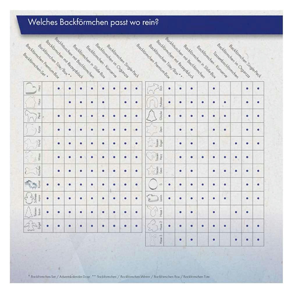 „Backen ist Liebe!“ Mit diesen Backförmchen aus Edelstahl (spülmaschinenfest) können Sie sich immer wieder eines der beliebten Symbole backen. Die Plätzchen lassen sich schön verzieren, was das Back-Erlebnis abrundet. Der individuell beidseitig bedruckbare Einleger unterstreicht Ihre Botschaft bei Bedarf mit einem kleinen, ausgestanzten Herz. Zur Auswahl stehen u.A.: Hund, Katze, Pferd, Herz, Blume, Kleeblatt, Knochen, Maus sowie eine große Auswahl an weihnachtlichen Backförmchen.