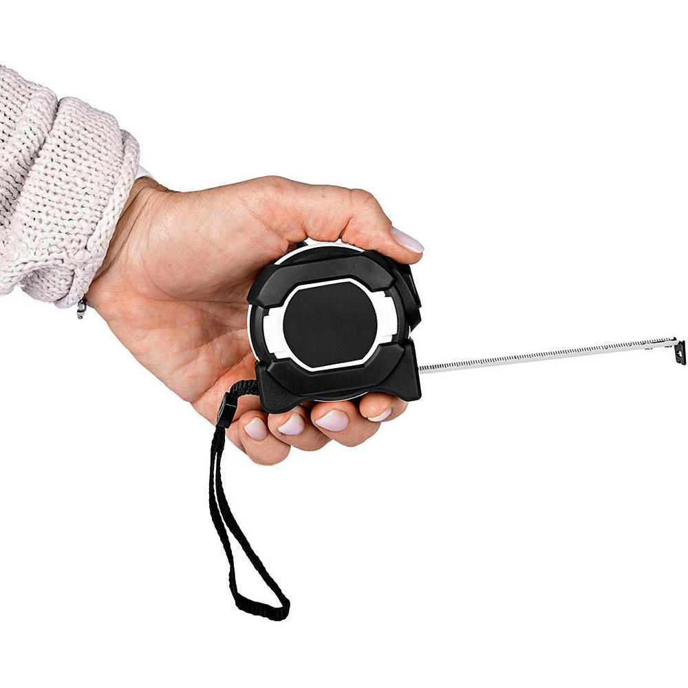 Stabiles und robustes Qualitäts-Bandmaß aus schlagfestem 2-Komponenten-Gehäuse. Durch die Aussparung im Haken kann das Stahlband in einen Nagel oder eine Schraube eingehängt werden. Knickfestigkeit: 1,60 m. Skalierung: cm, einseitig. Genauigkeitsklasse: EG-Klasse II. Ausstattung: dynamischer Bandrücklauf, beweglicher Bandanfangshaken, Gürtelclip und Handschlaufe.Verpackung: schwarze Geschenkverpackung.