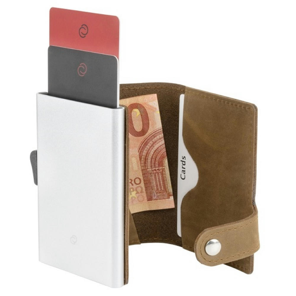 Metallkartenhalter für 4-7 Karten, "Unique", mit Druckknopf, Steckfach und Scheinfach