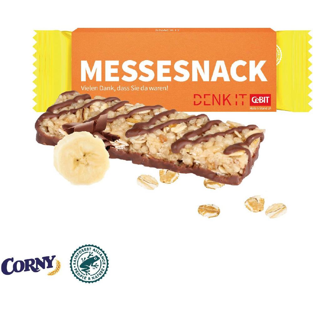 Inhalt: 1 Riegel (ca. 25 g) von CORNY Schoko oder Schoko-Banane. Verpackt in individuell bedruckbarem Werbeschuber. Inkl. 4c-Druck. Für jede Bestellung wird ein Baum über GROW MY TREE gepflanzt.