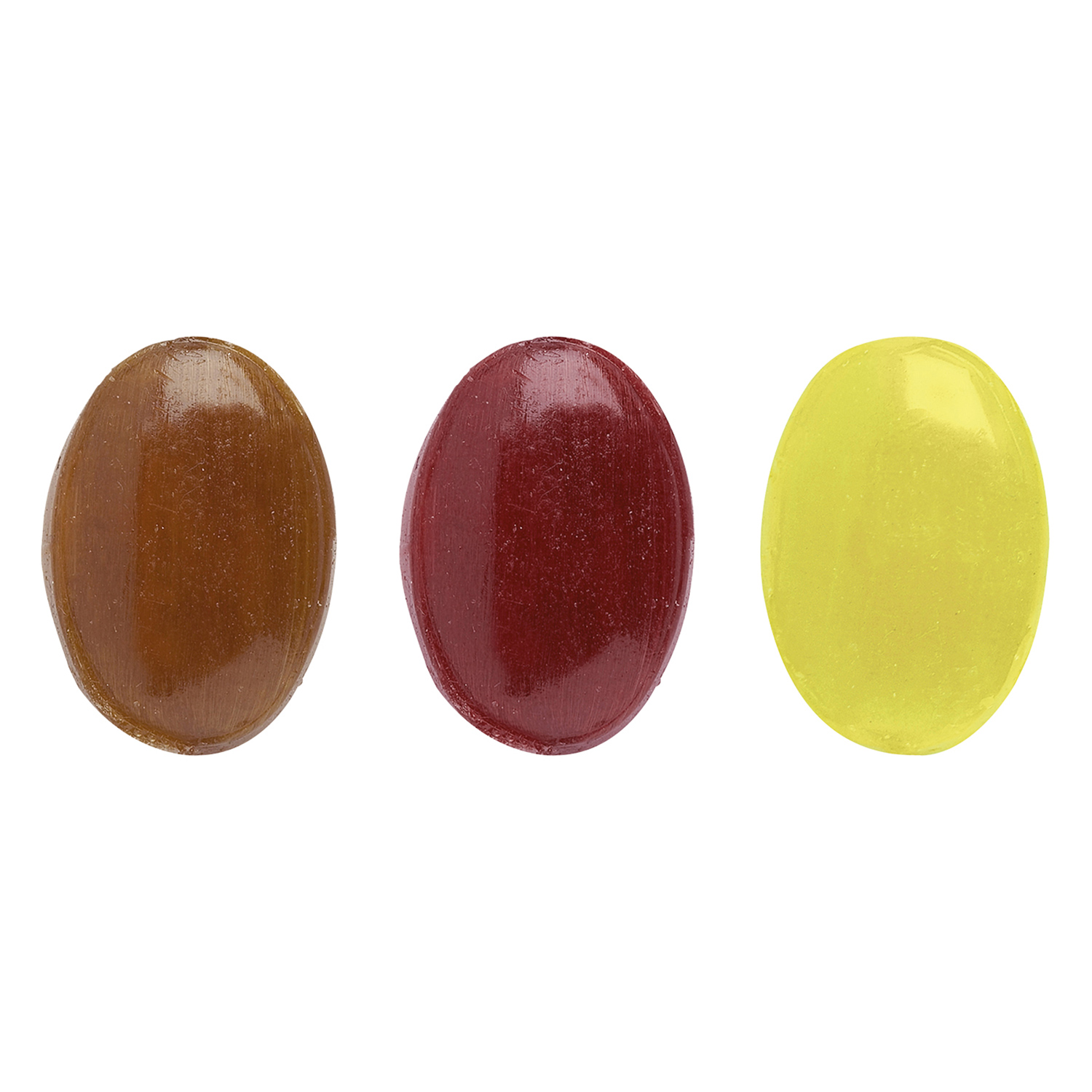 Energielieferndes Bonbon mit Dextrosefüllung und Vitamin C im Werbewickel aus glasklarem (alternativ weißem) Zellglas einzeln gewickelt. Geschmack: ab 25 kg: Zitrone, ab 500 kg: Cola oder Cassis. Inhalt: ca. 4,6 g/Stück, Maße: 6 x 2 cm, Haltbarkeit: ca. 18 Monate. Preis ab 25 kg inkl. 1-5c-Druck (Preis pro kg)