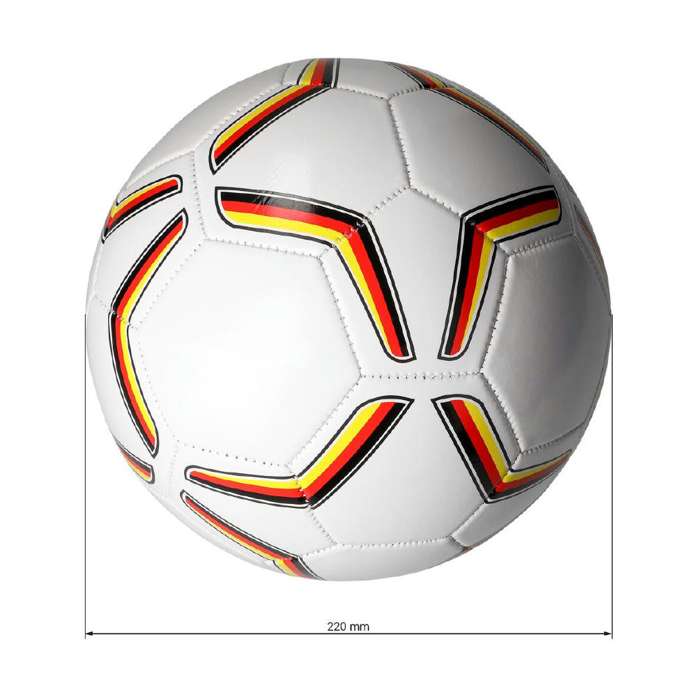 Der Fußball "Germany" in Größe 5 besticht durch sein sportliches Design in den Farben Weiß, Schwarz, Rot und Gelb – ideal für Fans. Gefertigt aus 1,6 mm starkem PVC, ist er maschinell genäht und bietet optimale Haltbarkeit. Ausgestattet mit einem robusten Butyl-Ventil und einer Latexblase, sorgt er für hervorragenden Luftdruck und langlebige Spielfreude. Perfekt für alle, die Spaß am Spiel haben!
