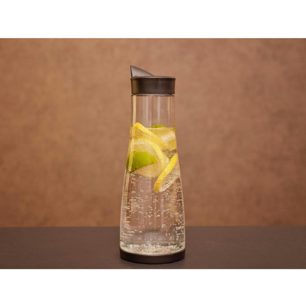 Glaskaraffe mit Ausgießer aus Kunststoff, welcher mittels Schraubverschluss sicher mit der Karaffe verbunden ist.