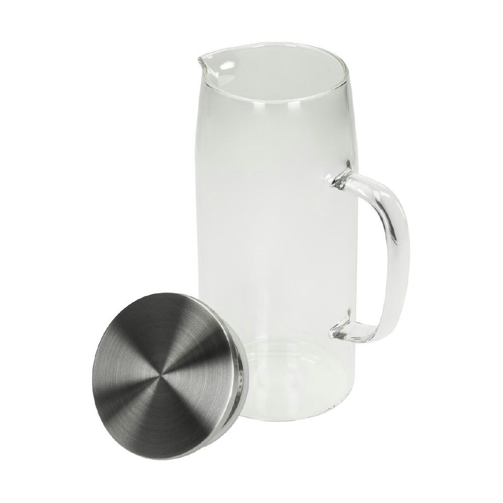 Karaffe aus Borosilikatglas mit Edelstahl- und Silikonelementen. Mit 1 l Füllvolumen ideal für Wasser, Saft oder Eistee. Durchdachtes Design für einfache Handhabung und leichte Reinigung. Stilvoll, funktional und perfekt für Alltag oder Büro.