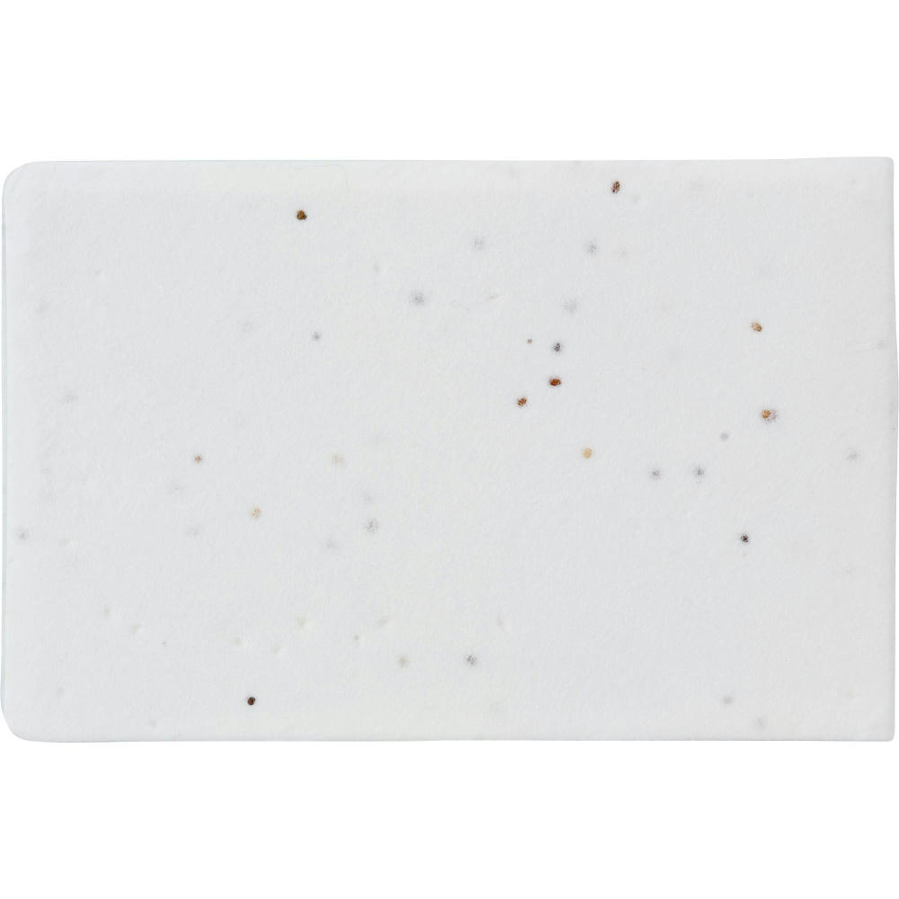 Haftnotizen mit Umschlag aus Saatgutpapier mit Mohnblumen. Fünf Farben von kleinen Haftnotizen.