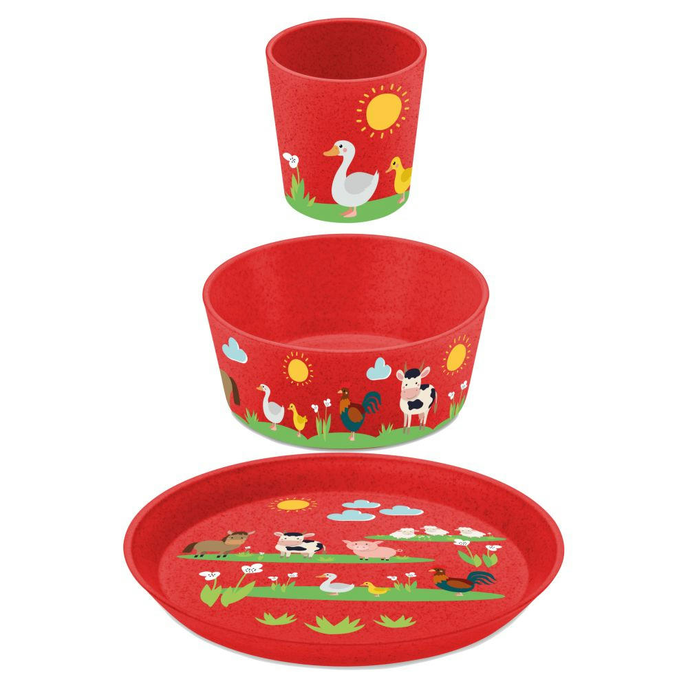Der kleine Teller ist ideal für Obst und gesunde Snacks und die kleine Schale macht sich für Müsli oder kleine Gerichte schnell unentbehrlich. Der kompakte Becher lässt sich von kleinen Händen gut greifen und kommt gänzlich ohne Henkel aus. CONNECT FARM ist robust, leicht und stapelbar und verzeiht auch mehrfache Saltos vom Esstisch. Ein wahres Multitalent für jeden Tag.