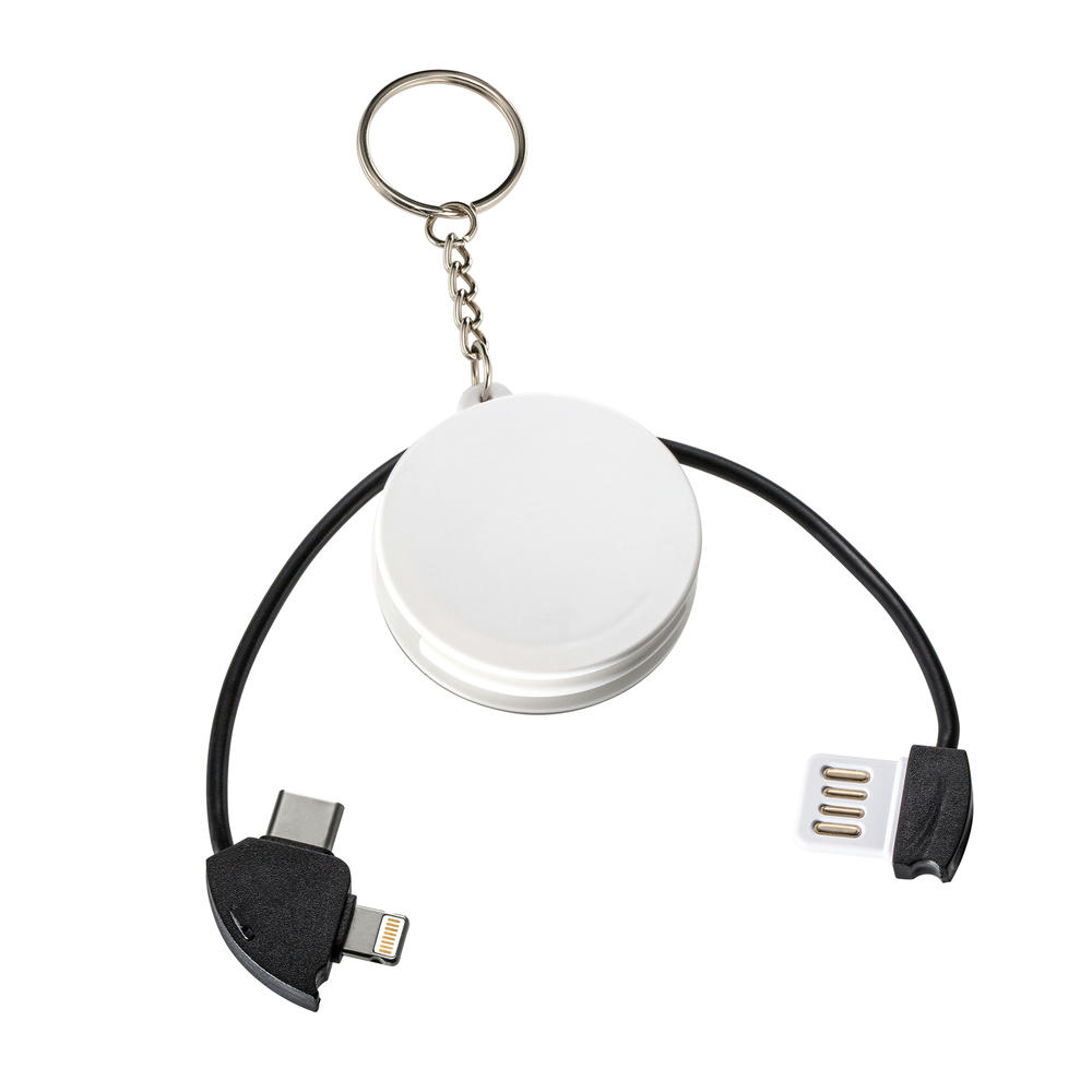 In diesem Schlüsselanhänger verbirgt sich ein Ladekabel, dass das Laden von USB auf Micro-USB oder für 5 Pin für Apple und USB -C erlaubt. Mit Flaschenöffner. Die Vorderseite kann komplett und vierfarbig bedruckt werden.
