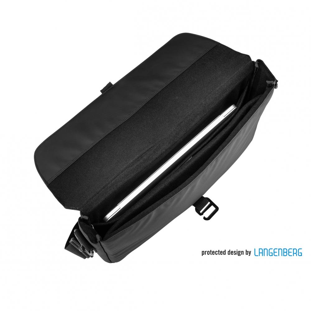 gepolstertes Hauptfach mit Überschlag, Innen mit Laptopfach bis 17", Einsteckfach für Kabel etc., abnehmbarer, verstellbarer Schultergurt mit Polsterung, Tragegriff gepolstert, Volumen: 6l