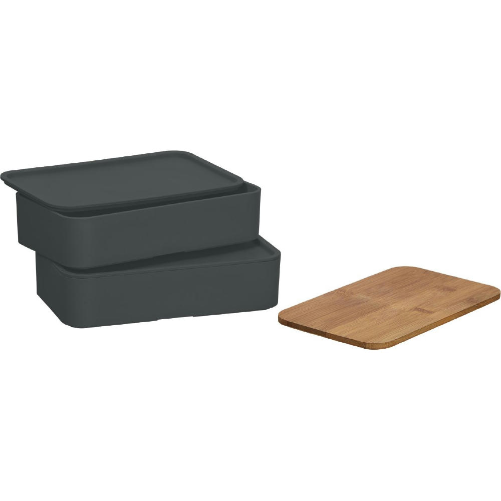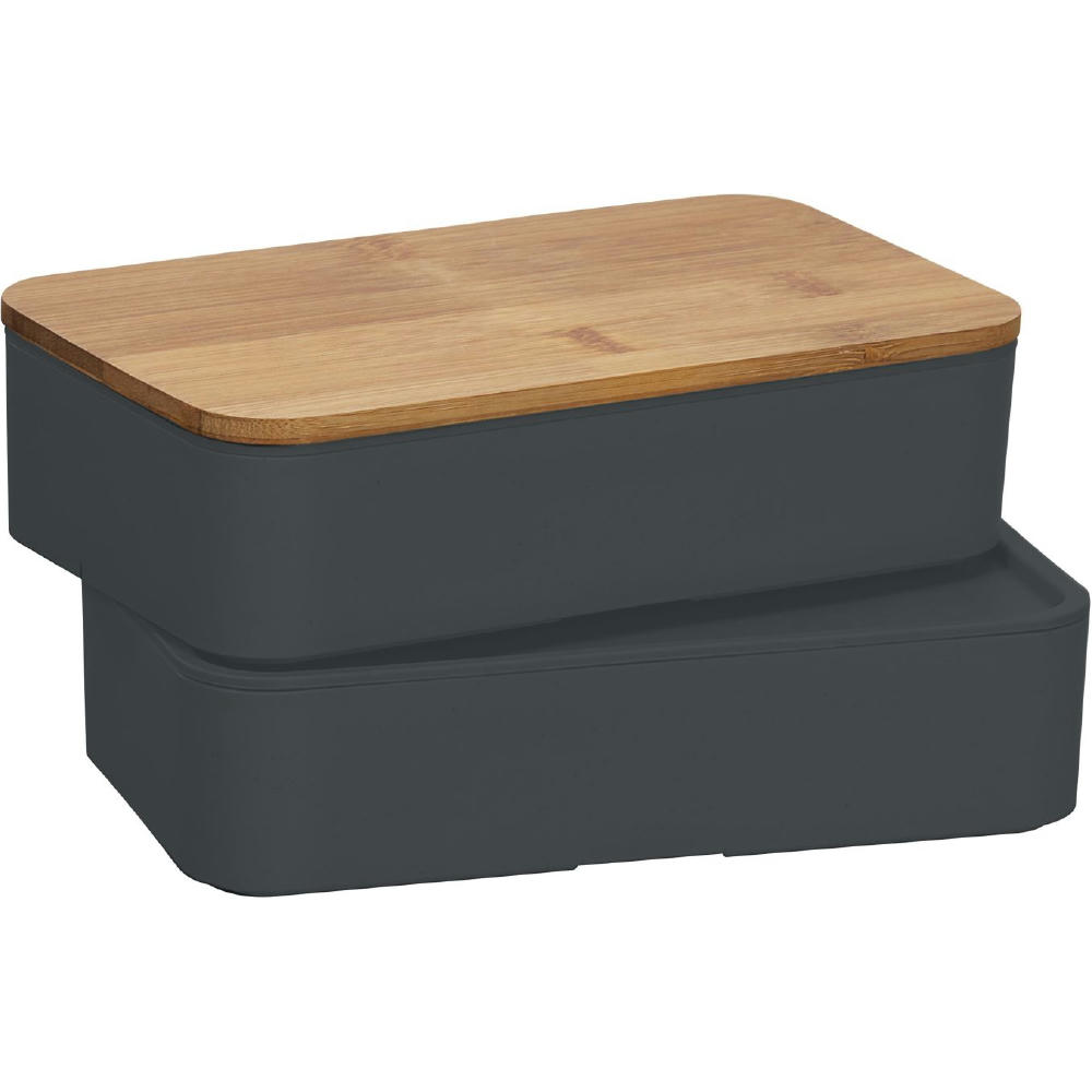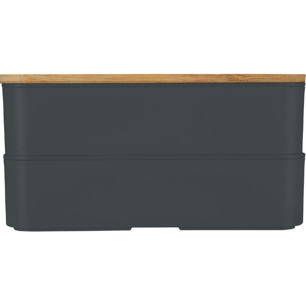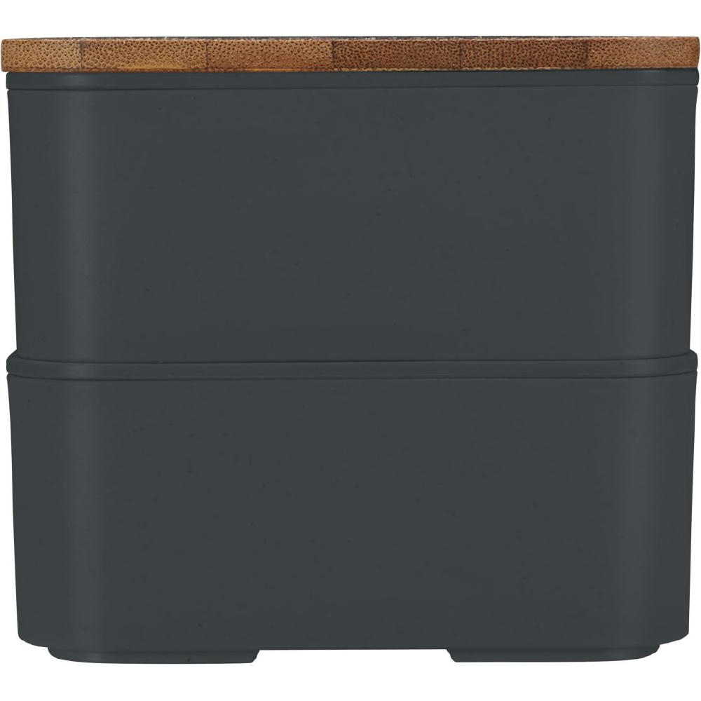 Nachhaltiges Doppel – mit Bambusdeckel und Besteck. Mit Elastikband und Besteckset.