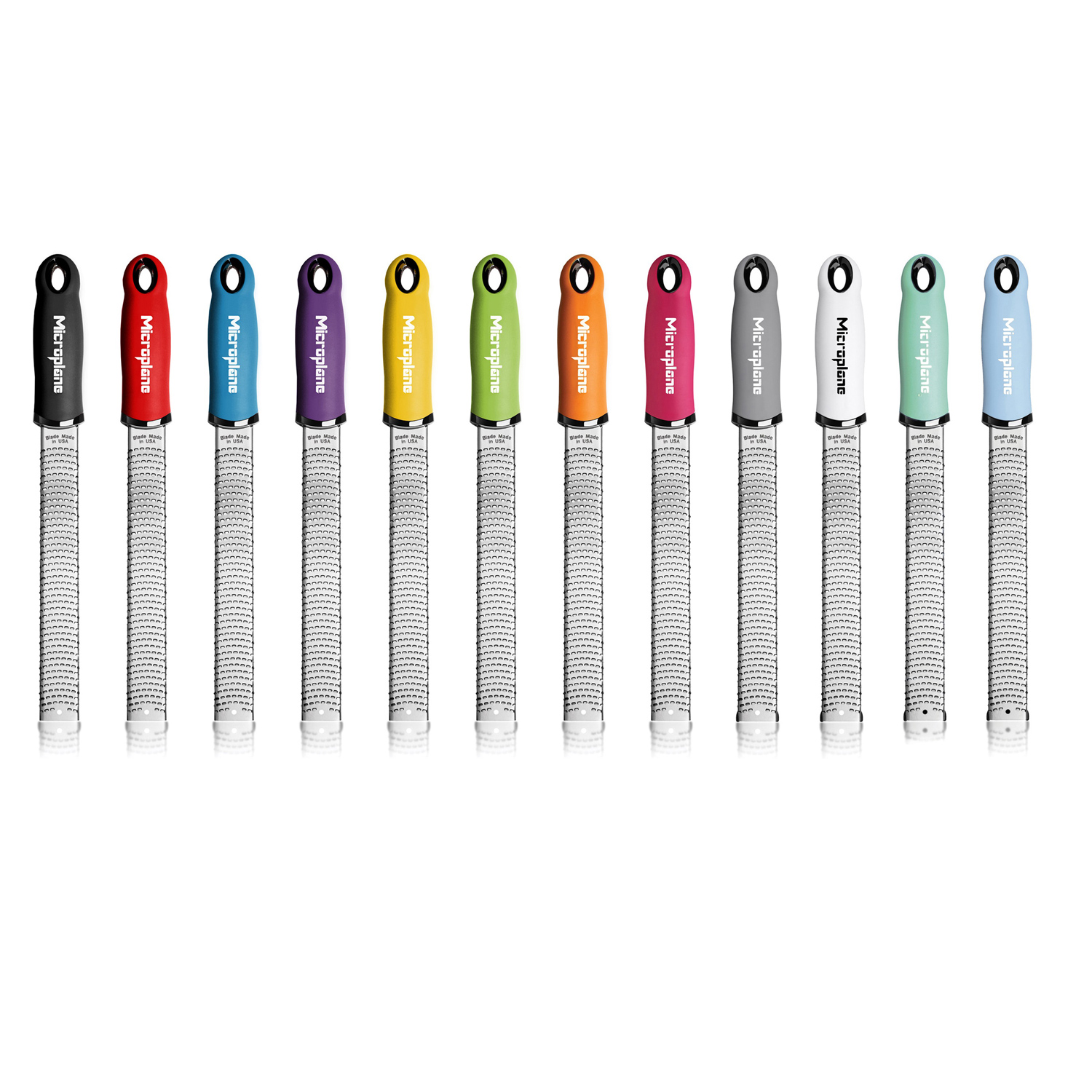 Der Premium Classic Zester, das Original unter den Microplane Reiben und das ultimative Must-Have für alle Profi- und Hobbyköche! Mit dem Microplane Klassiker, der Geschichte geschrieben hat, reiben Sie dank der rasiermesserscharfen, photo- geätzten Klinge - made in USA - Hartkäse, Ingwer, Knoblauch, Gewürze, Schokolade, Trüffel, Nüsse uvm. präzise und zesten Zitrusschalen ganz fein. Alles wird geschnitten, nicht zerdrückt. Das Aroma wird entfaltet und der Geschmack verstärkt. Preis inkl. Geschenkbox und 1C Druck auf Griff (100St. je Motiv).