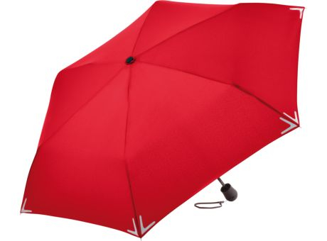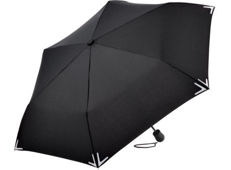 Raffinierter Handöffner-Taschenschirm mit modischen Reflektoren und LED-Leuchte. Einfache Handhabung durch Sicherheitsschieber, hochwertiges Windproof-PLUS-System für eine maximale Gestell-Flexibilität bei stärkeren Windböen, Bezug mit 3M™ Scotchlite™ Reflective Material an den Segmentecken als modisches Detail, Soft-Feel-Griff mit schwenkbarer LED-Lampe, Leuchtkopf (inkl. Knopfzellen) verstellbar auf weißes Dauerlicht oder rotes Blinklicht, komfortables Futteral mit Druckknopf. WEEE-Reg.-Nr. DE 14360689, Batt-Reg.-Nr. DE 52803080, Batterien (2 x CR2025) im Lieferumfang enthalten. Weitere Safebrella®-Schirme: 5071, 5471, 5571 und 7571.
