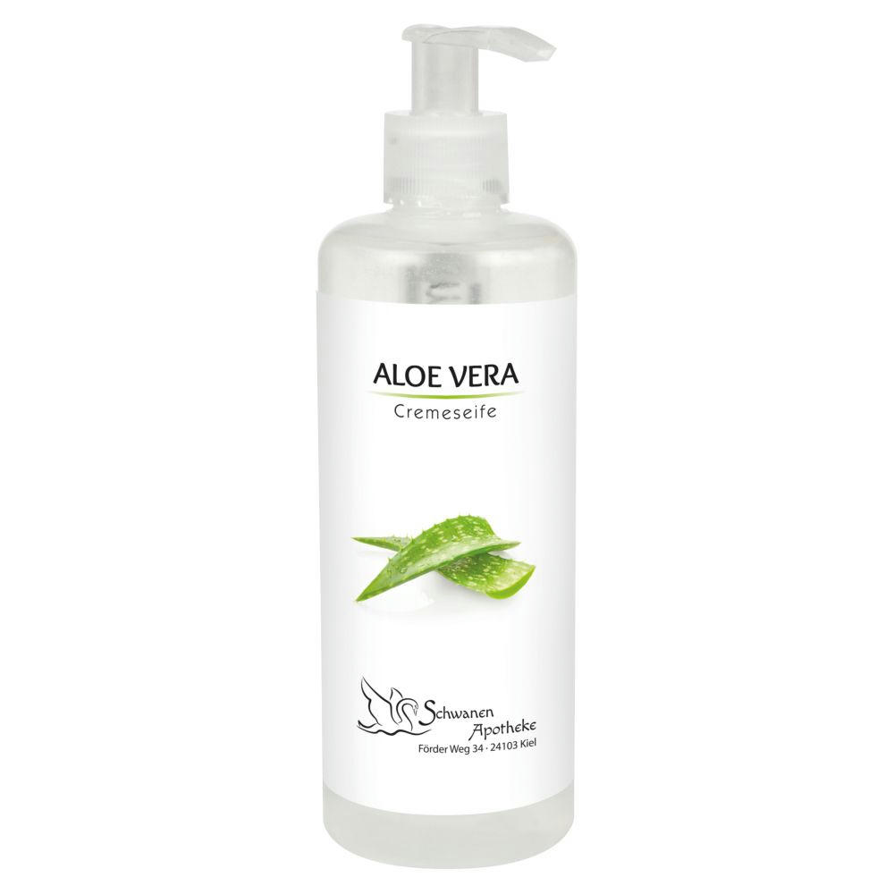 Transparenter Pumpspender gefüllt mit Cremeseife »Aloe Vera« mit milden, sehr hautverträglichen und feuchtigkeitsspenden Substanzen. Dezenter Unisex-Duft. Beinhaltet keine Mineralöle, keine Mikroplastikpartikel und ist vegan. Material: Kunststoff. Farbe: transparent. Maße: 18 x 5,6 cm.