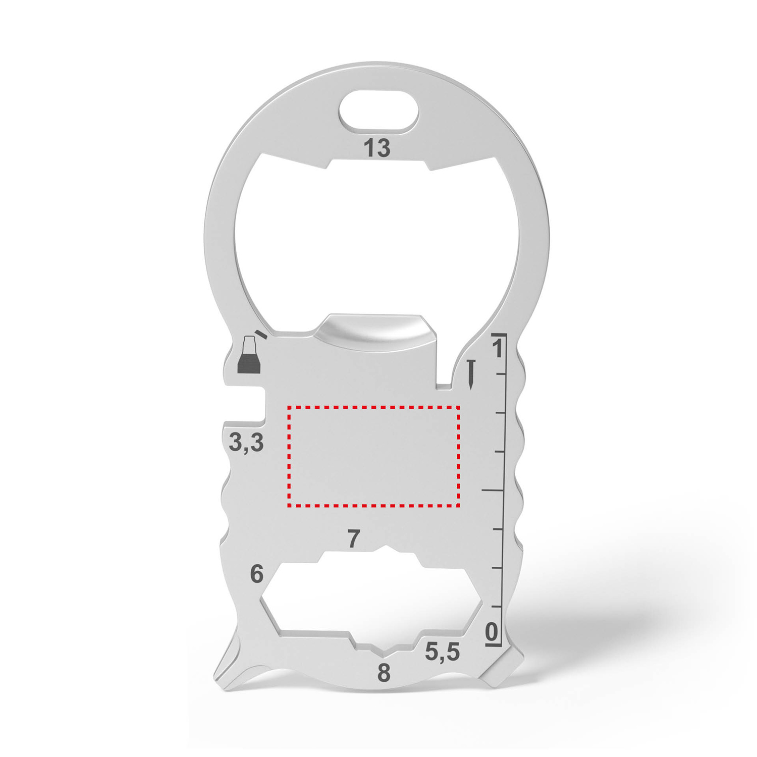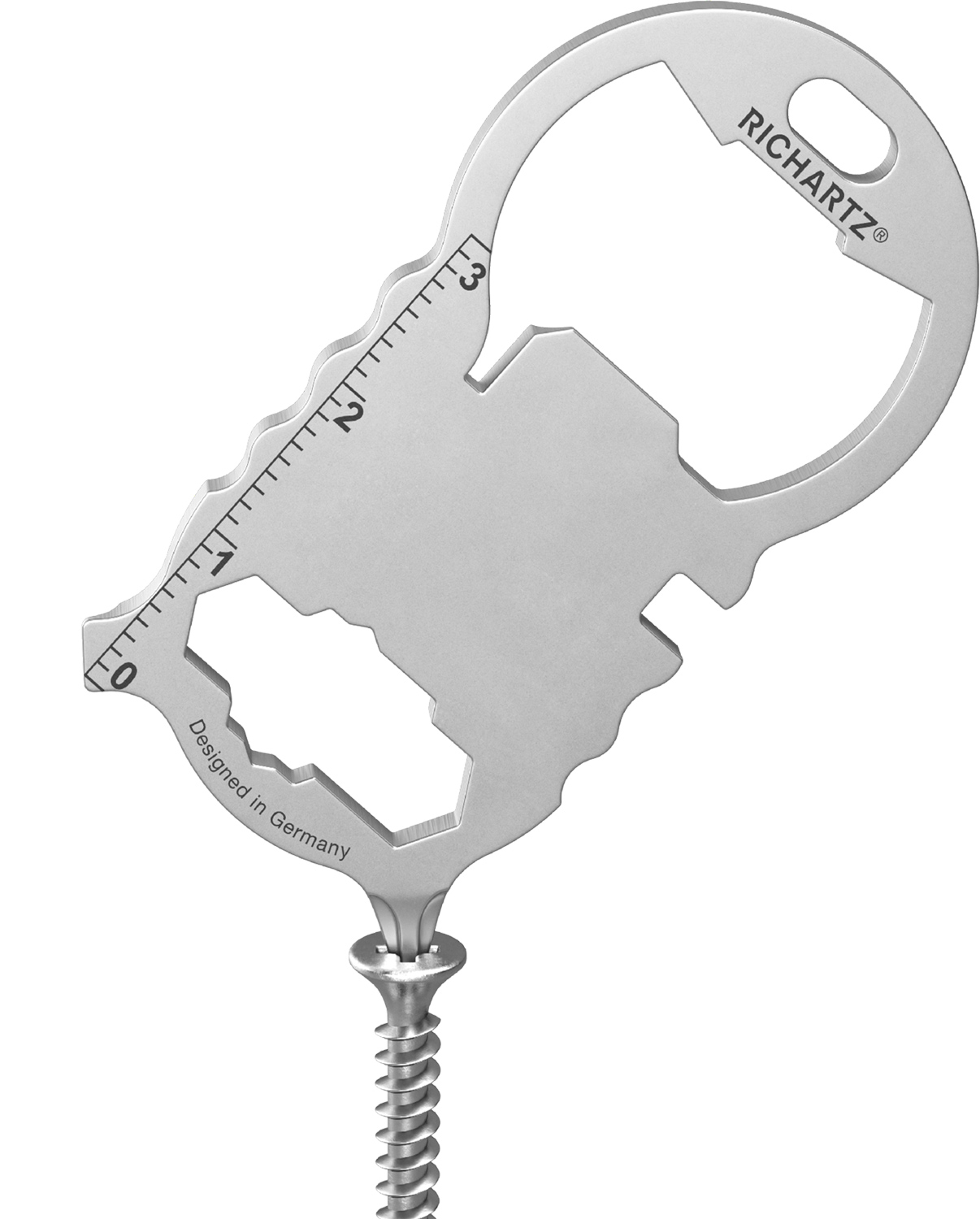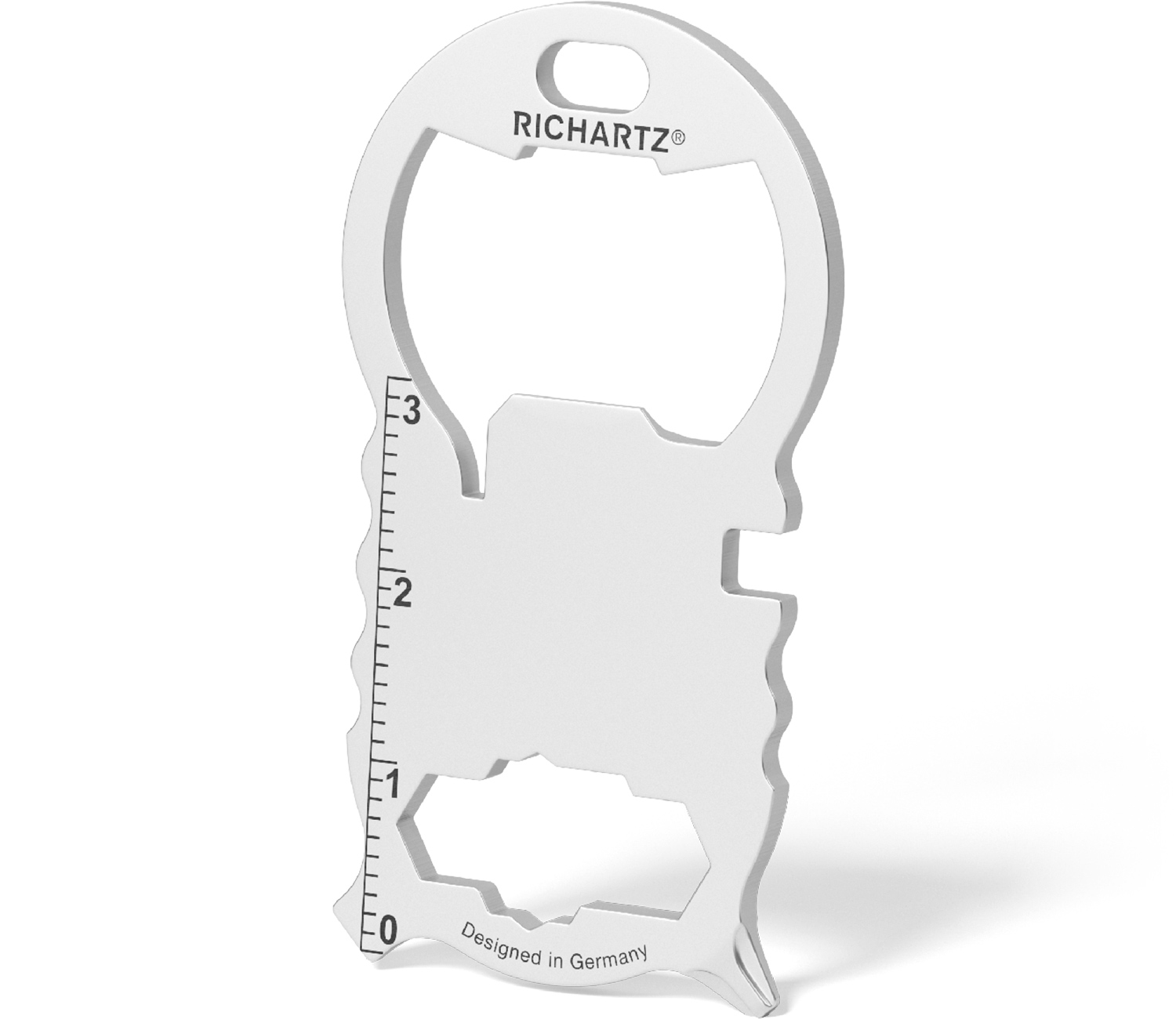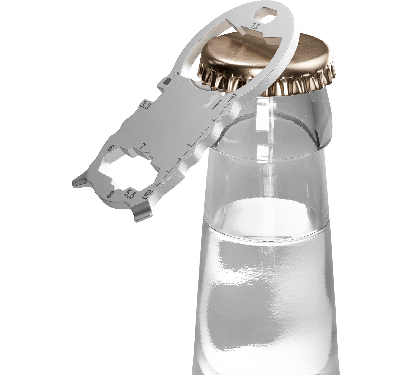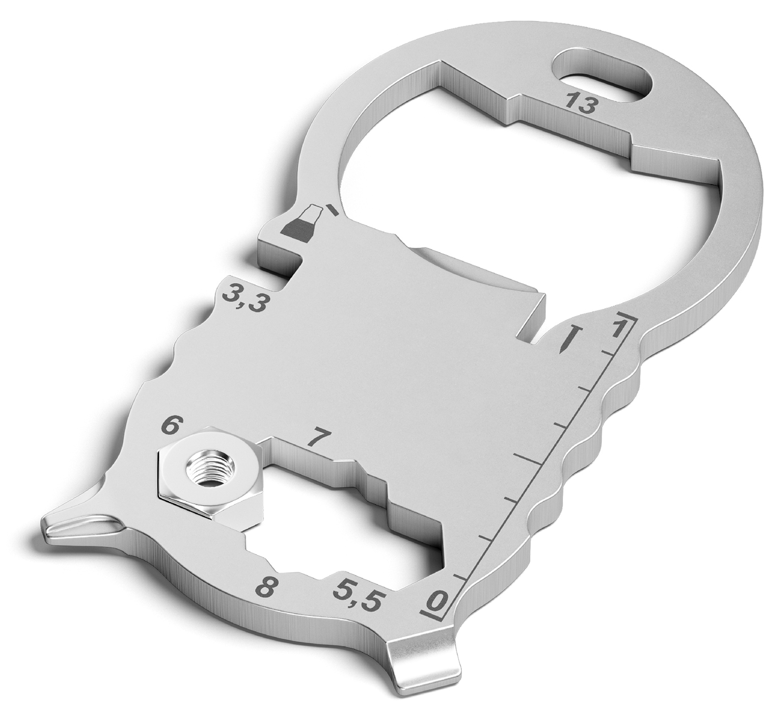 Kleines, kompaktes Multitool mit 13 Funktionen, aus hochwertigem, matt gestrahltem Edelstahl gefertigt. Passt an jeden Schlüsselbund. Inkl. Lasergravur und individuell gestalteter Verpackung.