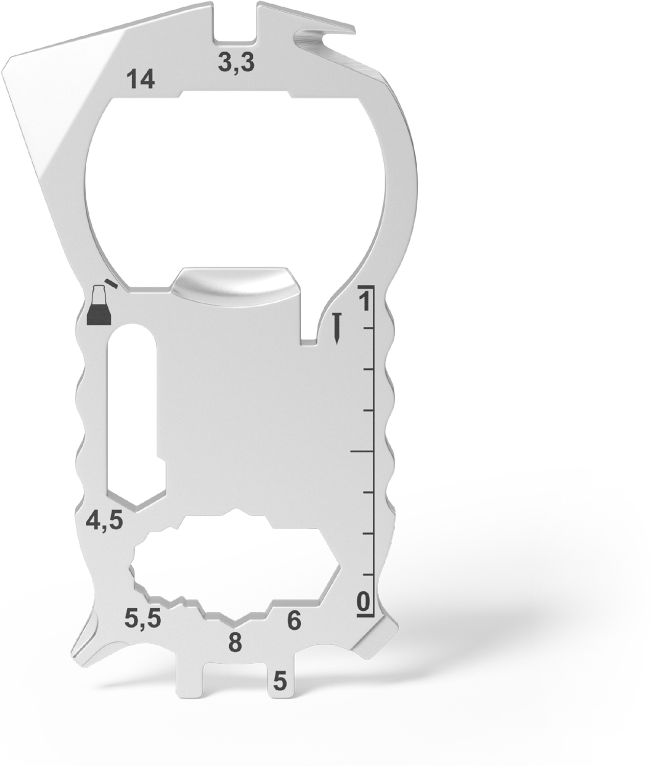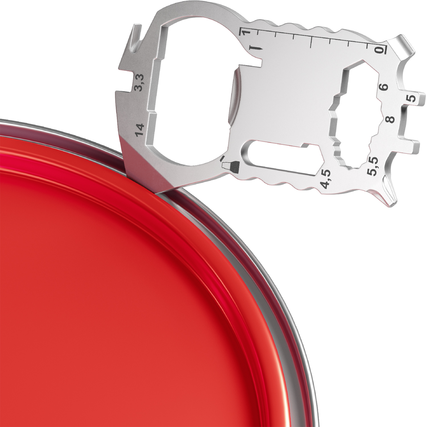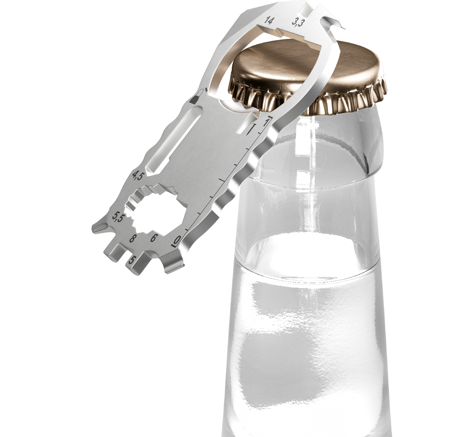 Kleines, kompaktes Multitool mit 17 Funktionen , aus hochwertigem, matt gestrahltem Edelstahl gefertigt. Passt an jeden Schlüsselbund! Inkl. Lasergravur und individuell gestalteter Verpackung.