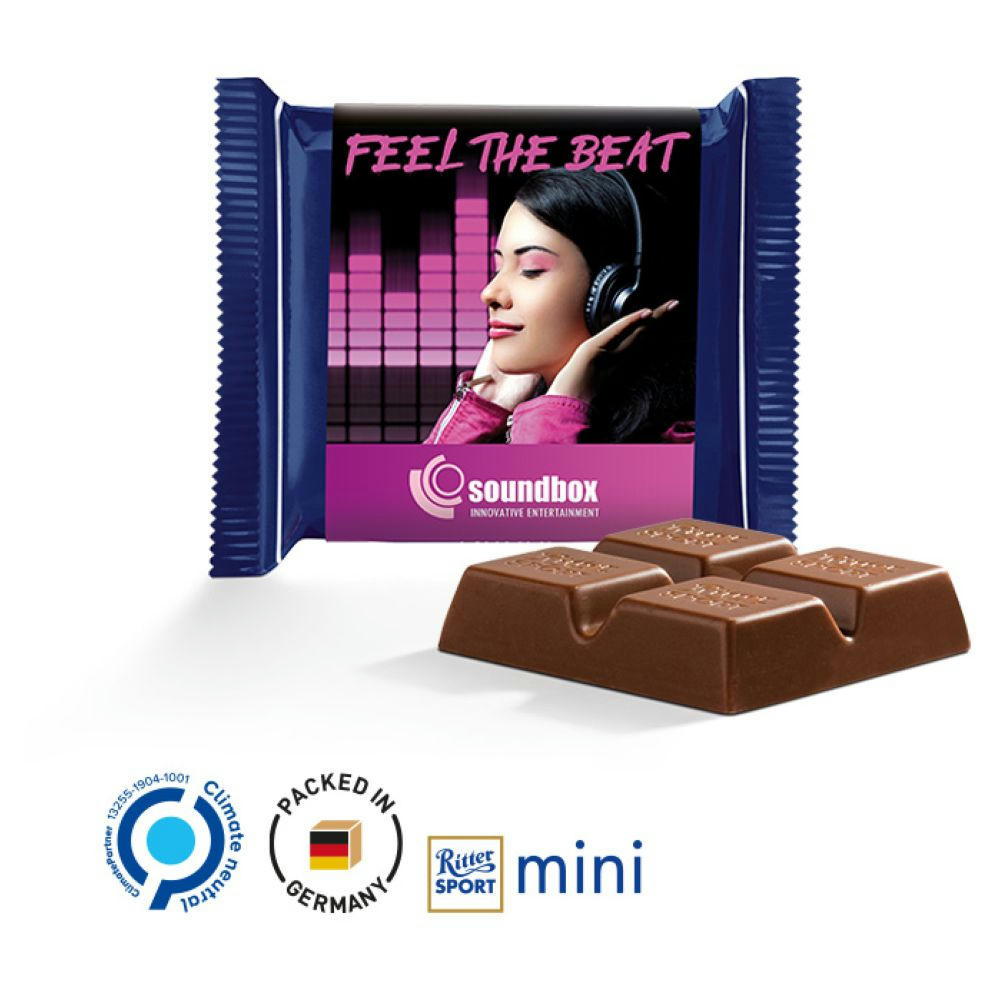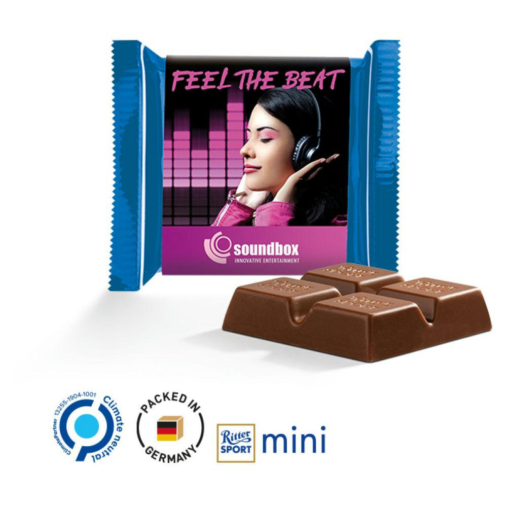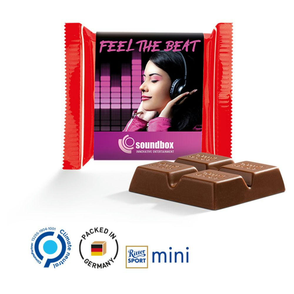 Ritter SPORT Mini Schokolade mit Papierbanderole, individuell bedruckt. Inhalt: Ritter SPORT Mini Mini Haselnuss, 16,5 g