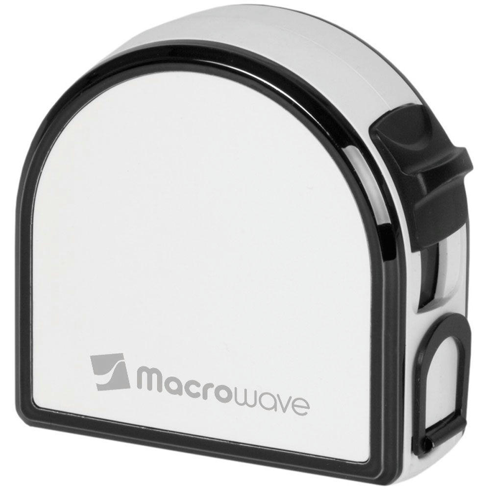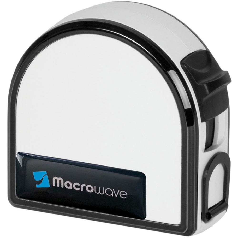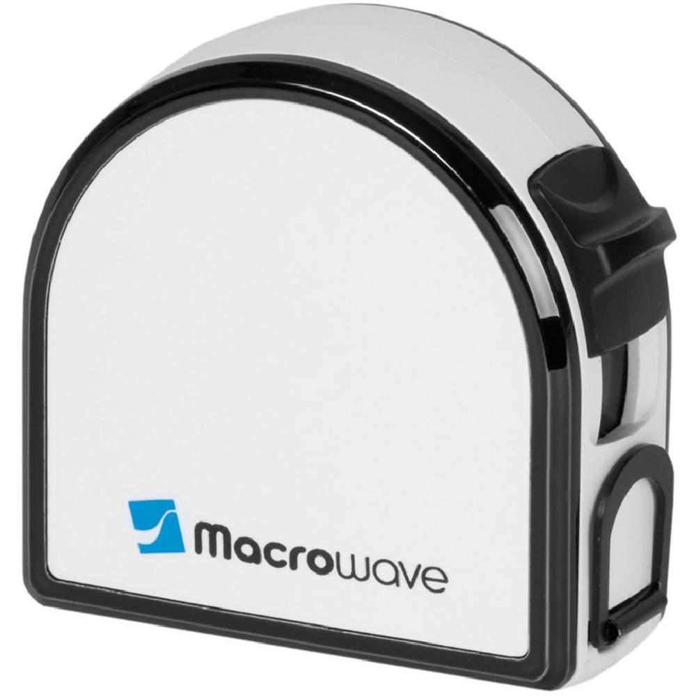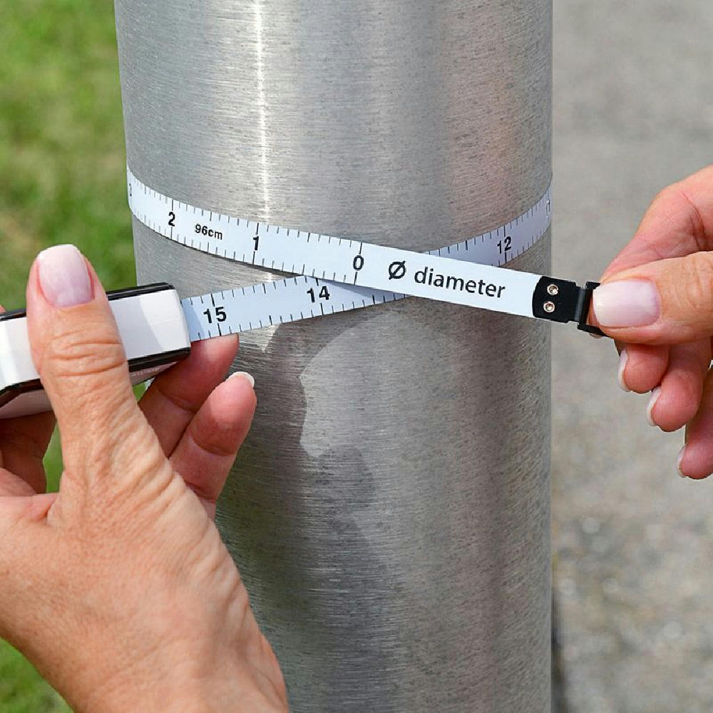 Bandmaß mit Durchmesserskala. Schlagfestes Gehäuse. Mit dyn. Bandrücklauf. Band: 3 m/13 mm, lackiert. Skalierung: cm, zweiseitig (Länge/Umfang, Durchmesser). Genauigkeit: EG -Klasse II . In schwarzer Geschenkverpackung.