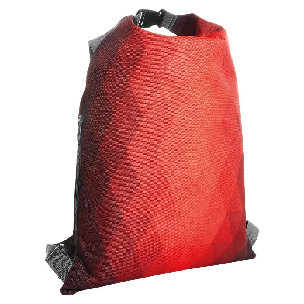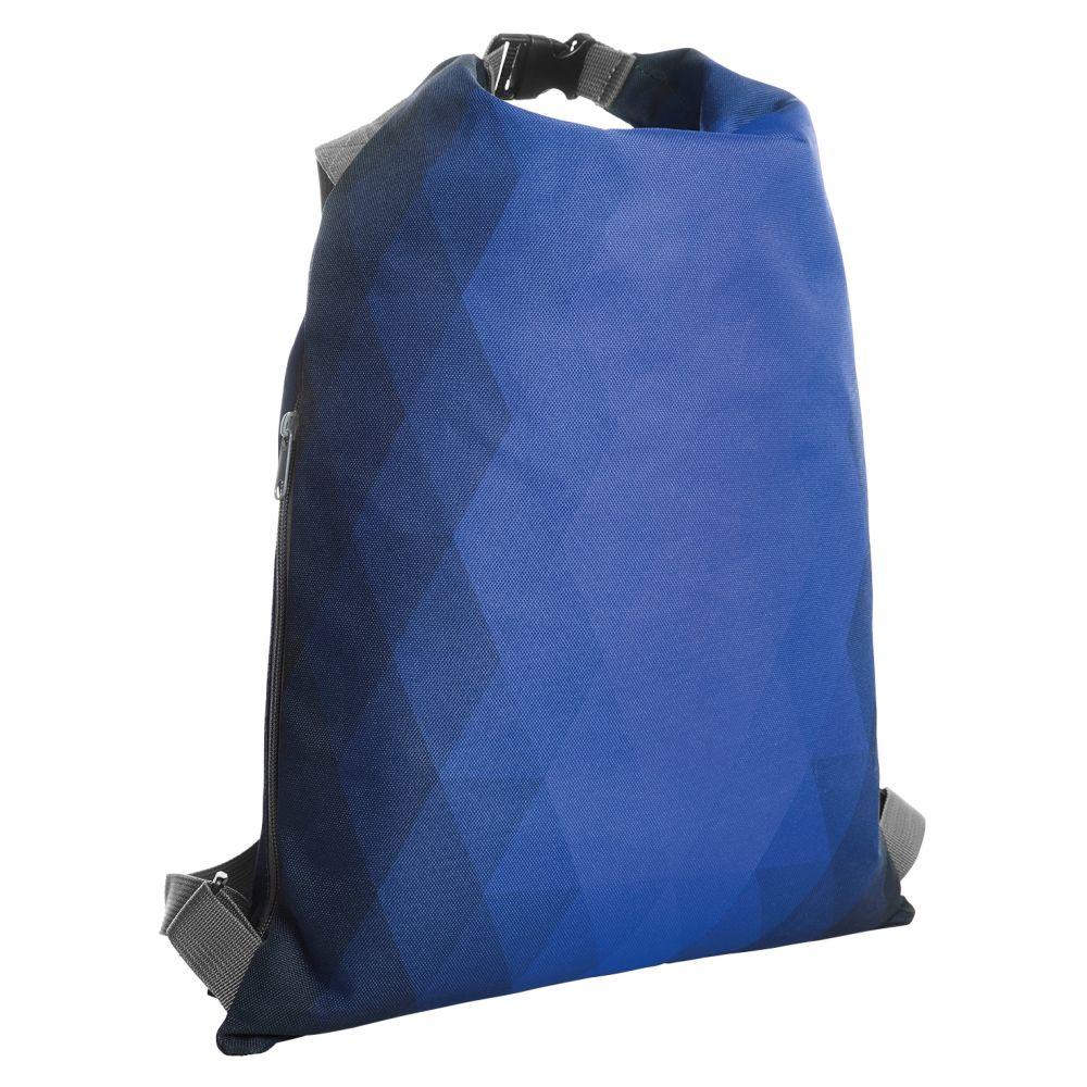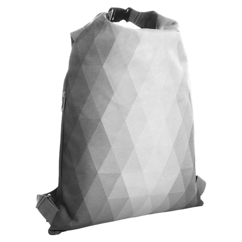 leichter, innovativer Rucksack mit Rauten-Dekor; beidseitig tragbar; Reißverschluss-Hauptfach mit zusätzlicher Wickelfunktion; seitliche Reißverschluss-Tasche; gewebte, längenverstellbare Schultergurte