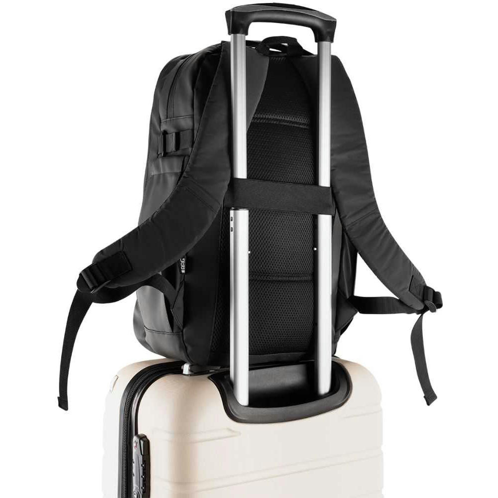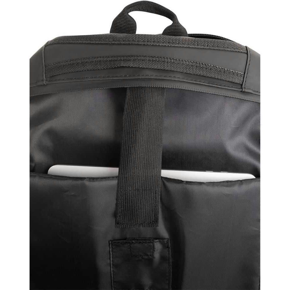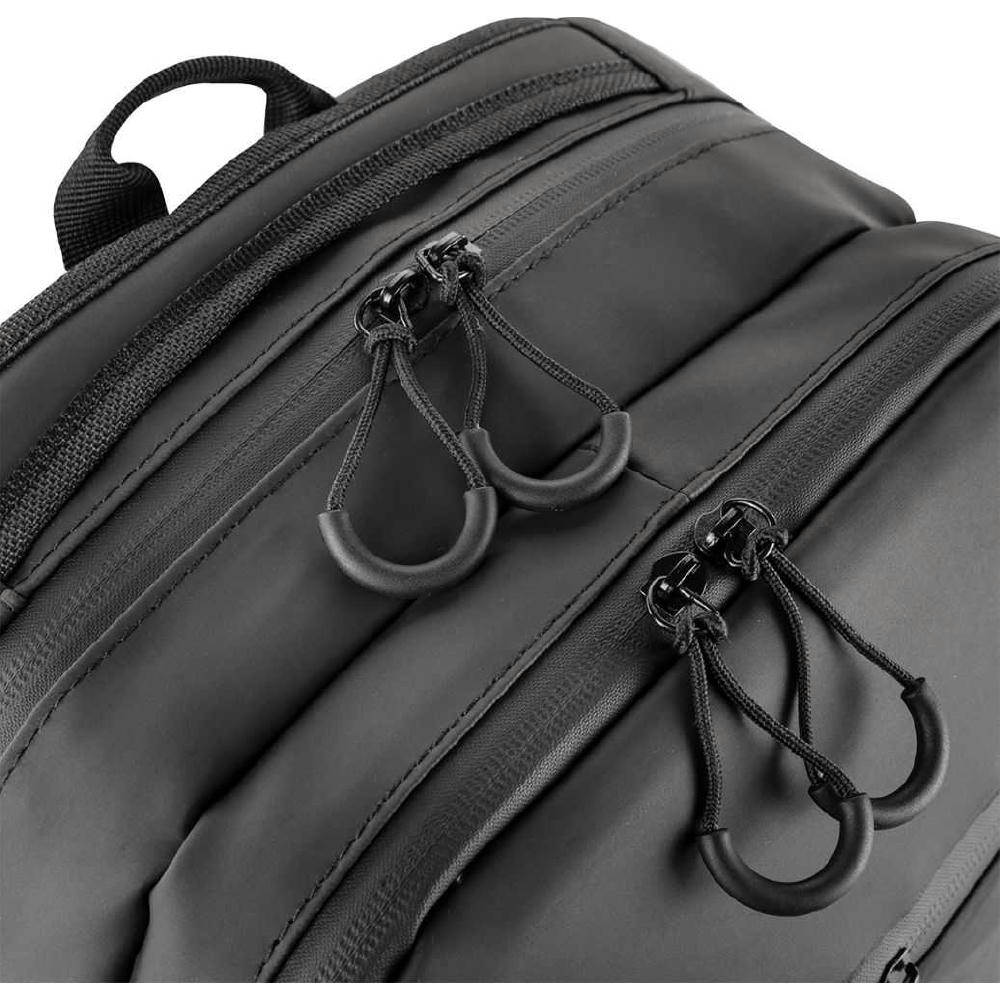 2-Wege Reißverschlusshauptfach, Gepolstertes Laptopfach bis zu 17”, 2-Wege Sekundärhauptfach mit großer Innentasche aus Mesh sowie weiterer RV-Innentasche. 2-Wege-Reißverschluss-Frontfach. Flexibele Seiten-Flaschenfächer, Trolleyschlaufe. Gepolsterte, verstellbare, reflektierende Schultergurte. Verschweißte Reißverschluss-Nähte und seitliche Verstellschnallen.