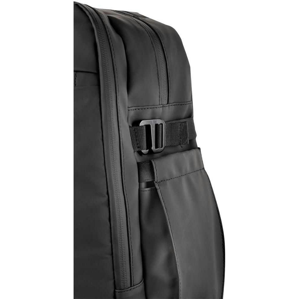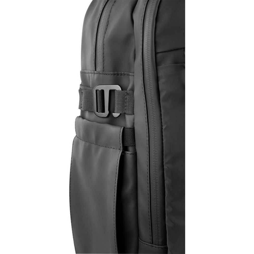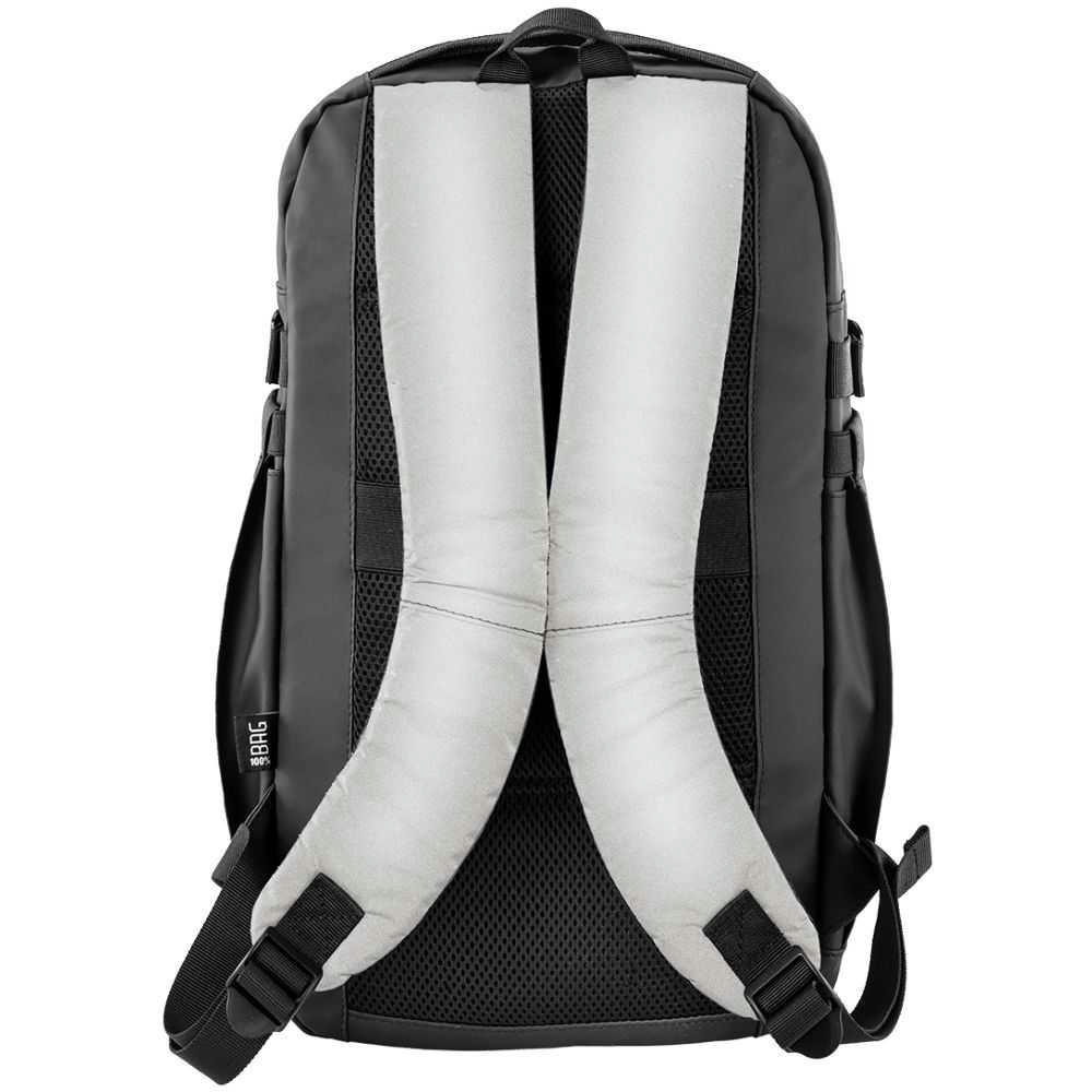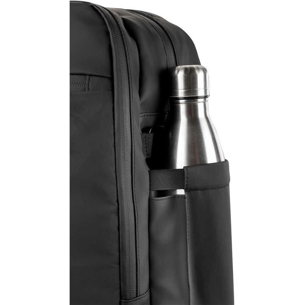2-Wege Reißverschlusshauptfach, Gepolstertes Laptopfach bis zu 17”, 2-Wege Sekundärhauptfach mit großer Innentasche aus Mesh sowie weiterer RV-Innentasche. 2-Wege-Reißverschluss-Frontfach. Flexibele Seiten-Flaschenfächer, Trolleyschlaufe. Gepolsterte, verstellbare, reflektierende Schultergurte. Verschweißte Reißverschluss-Nähte und seitliche Verstellschnallen.