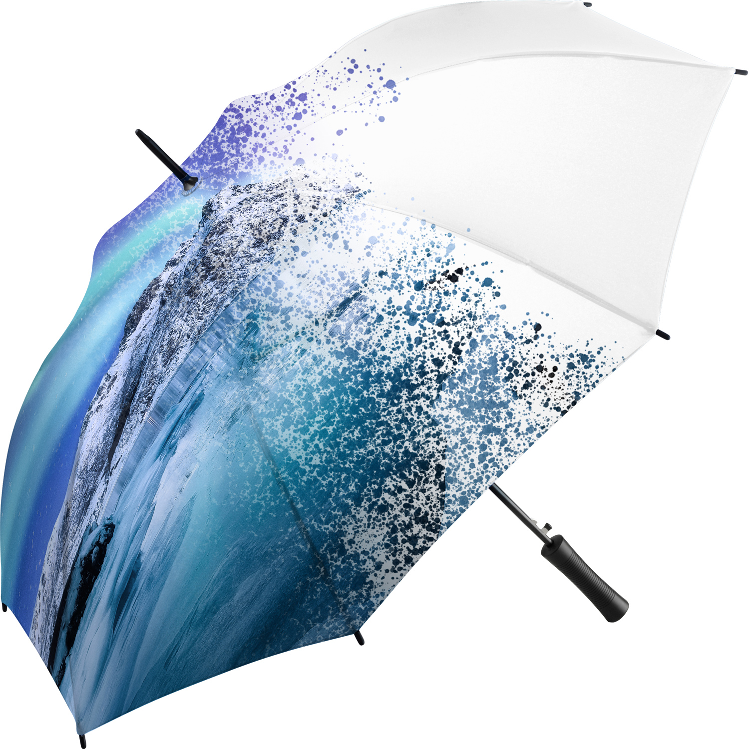 Individuelles Design im Allover-Druck. Bereits ab 100 Stück lässt sich ein vollflächiger Digital-Allover-Druck des Wunschmotivs umsetzen. Dabei stehen Ihnen 8 verschiedene Schirmmodelle zur Auswahl. Darüber hinaus stehen Ihnen noch weitere Veredelungsmöglichkeiten zur Verfügung wie Druck auf dem Futteral, Domingsticker im Griff oder Druck auf dem Schließband. Fragen Sie uns nach den Möglichkeiten.