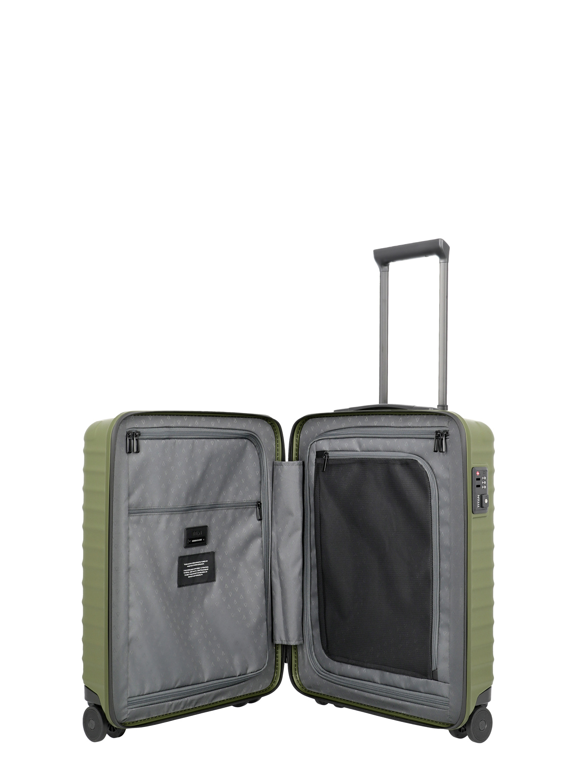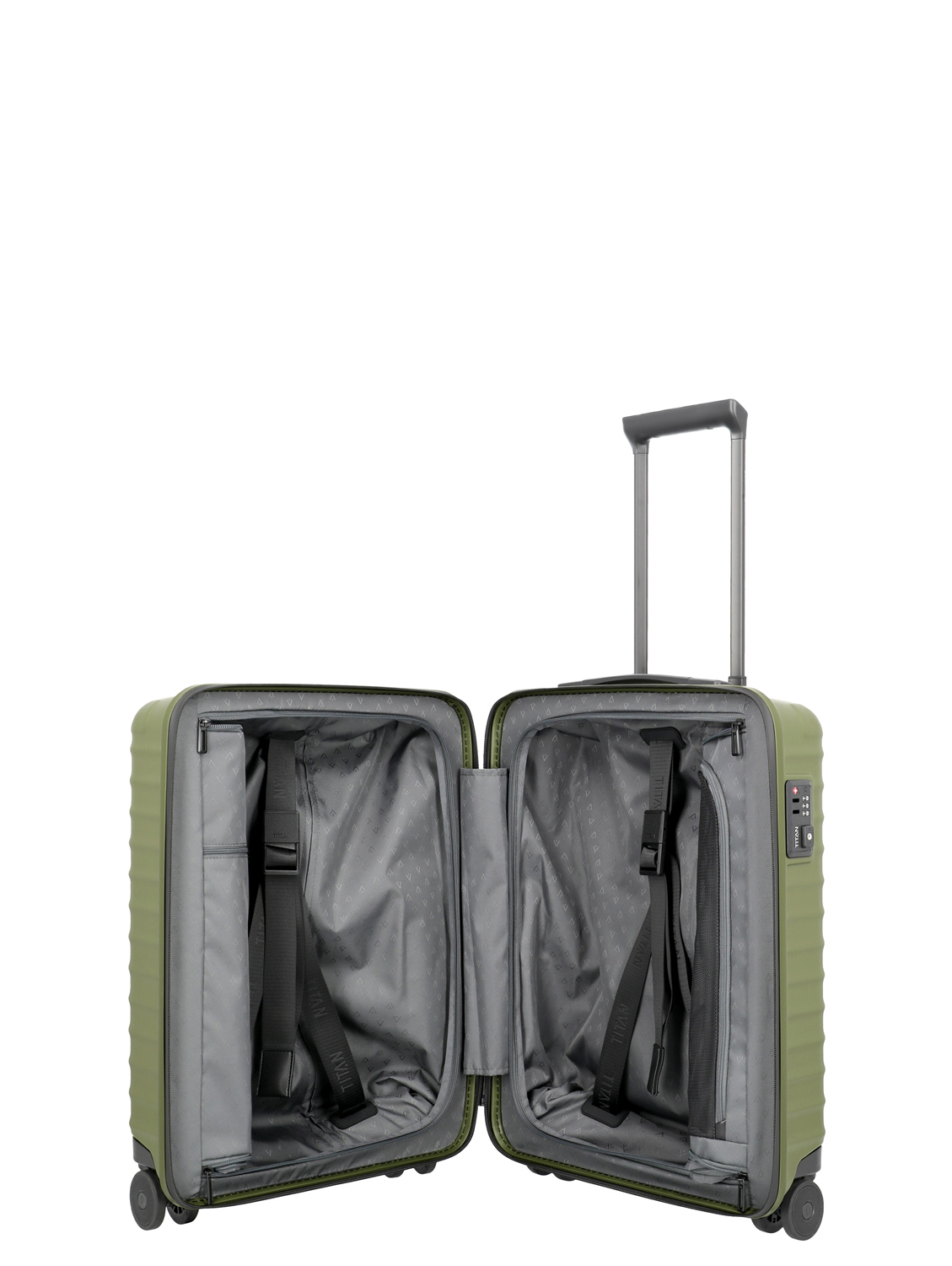 Hochwertiges Design mit höchster Qualität.Speziell entwickelte, besonders matte Oberflächenstruktur für maximale Kratzresistenz. 100 % Polycarbonat. Zweifach verstärkte Schutzecken, für noch mehr Stabilität. Leichtgängiger, wasserabweisender Reißverschluss. Innenfutter aus recyceltem Polyester mit hochwertiger Jacquard-Webung. Intelligente Innenaufteilung mit bis zu drei zusätzlichen Fächern. Herausnehmbare Packgurte in praktischer Y-Shape. Produktspezifische Seriennummer. Ergonomisch geformte Handgriffe. Große, überdurchschnittlich leise Doppelrollen. Made in Germany.