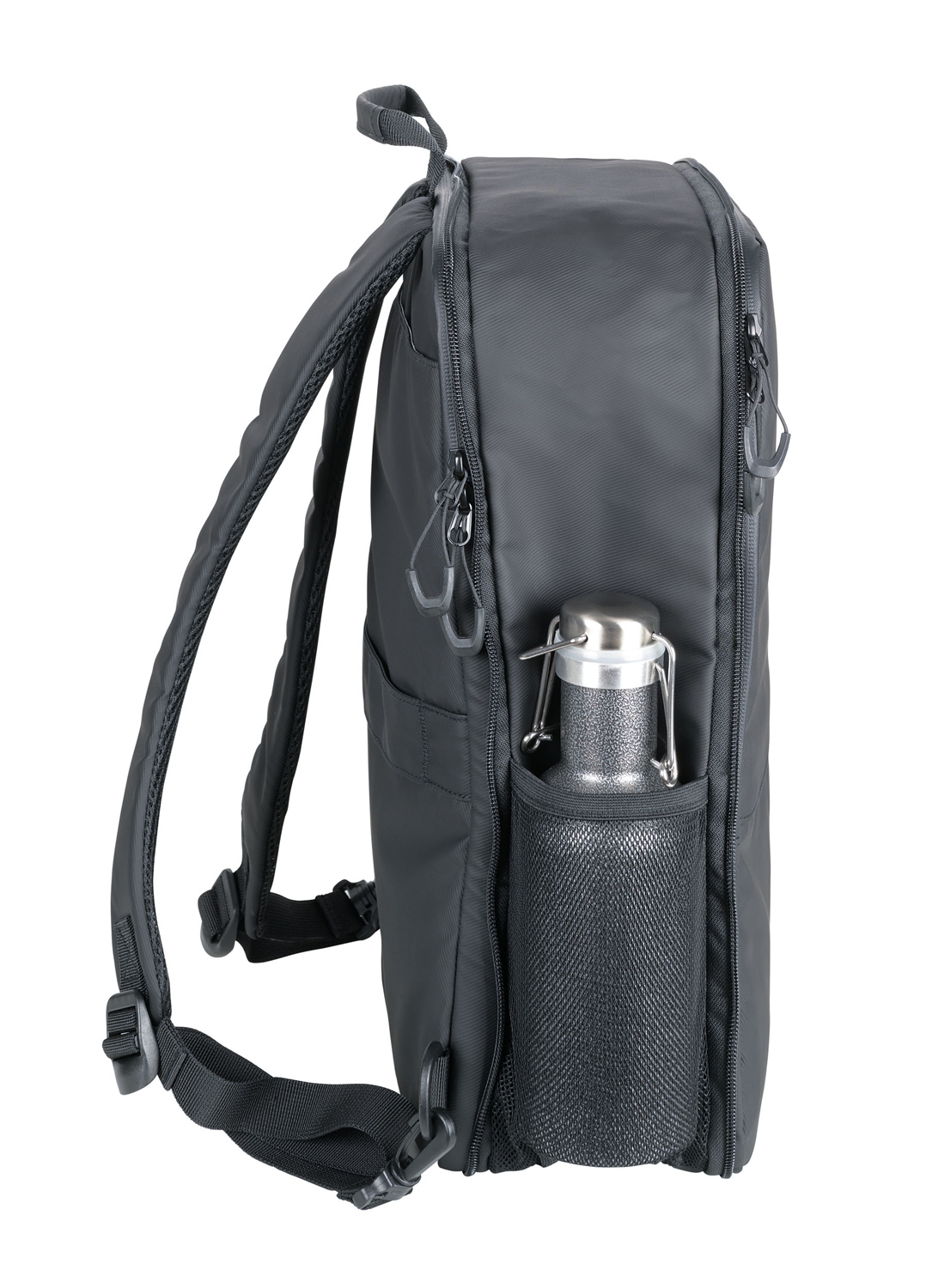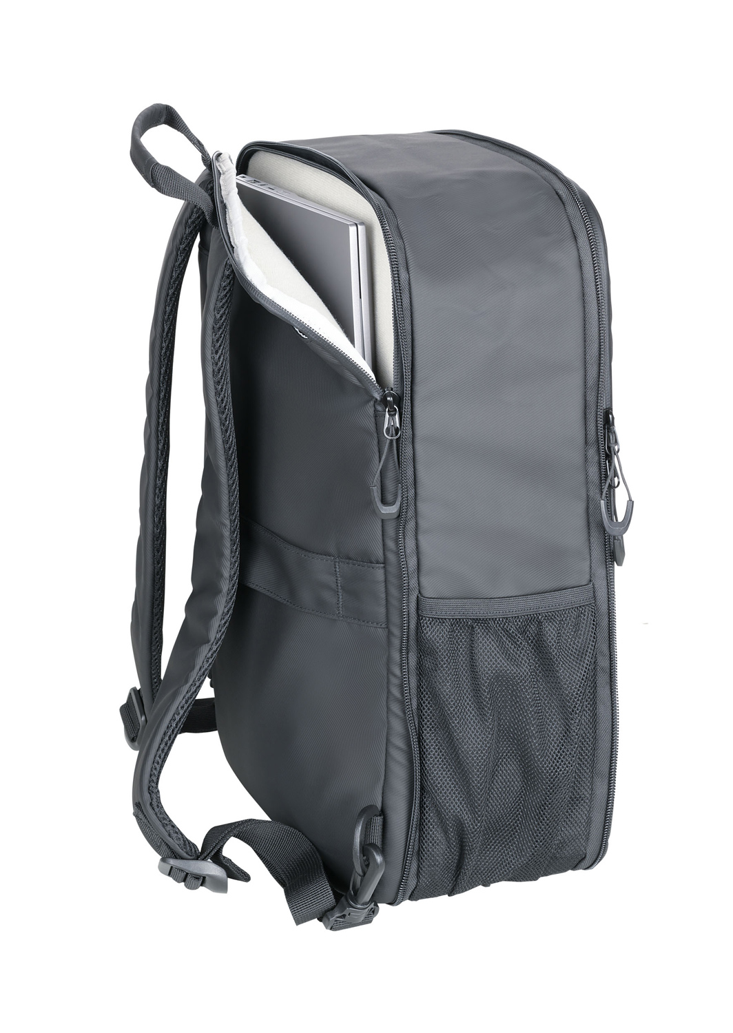 Bringt Ordnung in Ihre digitale Arbeits-und Freizeitwelt. Laptopfach bis zu 16". Durch zusätzlichen Reißverschluss erweiterbar von 6 auf 14 Liter. Fronttasche mit Diebstahlschutz und Karabiner. Verstärkter Standboden, Schlaufe zur Befestigung am Trolley, Tragegriff, versteckte Rucksackgurte.