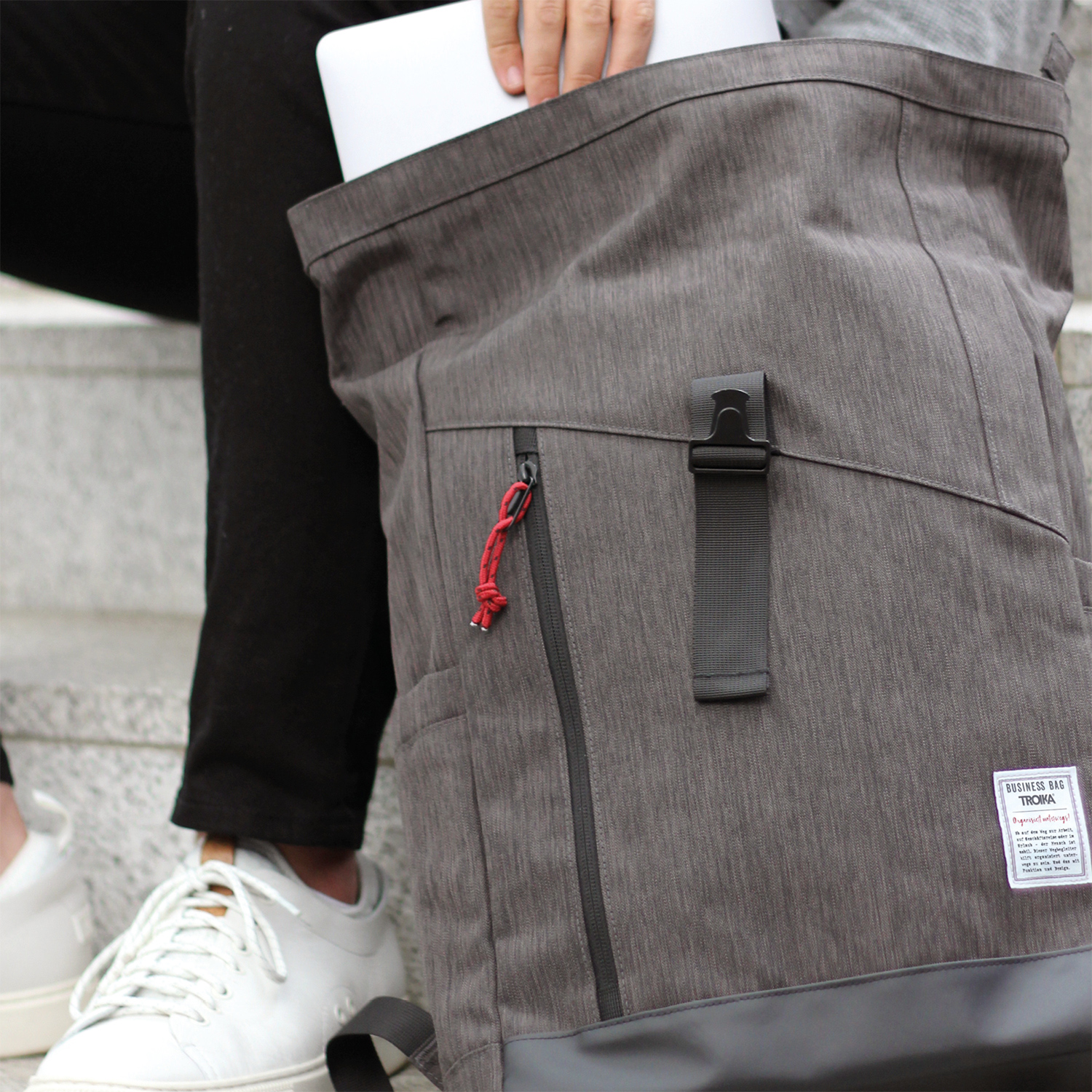 Mit Steckverschluss aus Metall, Hauptfach mit Reißverschlussfach und 2-fach unterteiltem Einschubfach mit Klettverschluss, Fronttasche mit Reißverschluss, 2 Seitentaschen, rückseitiges Geheimfach, gepolsterte Schultergurte, abgesetzter Standboden. Tragkraft bis zu 15 kg. Material: Polyester. Farben: anthrazit, schwarz.