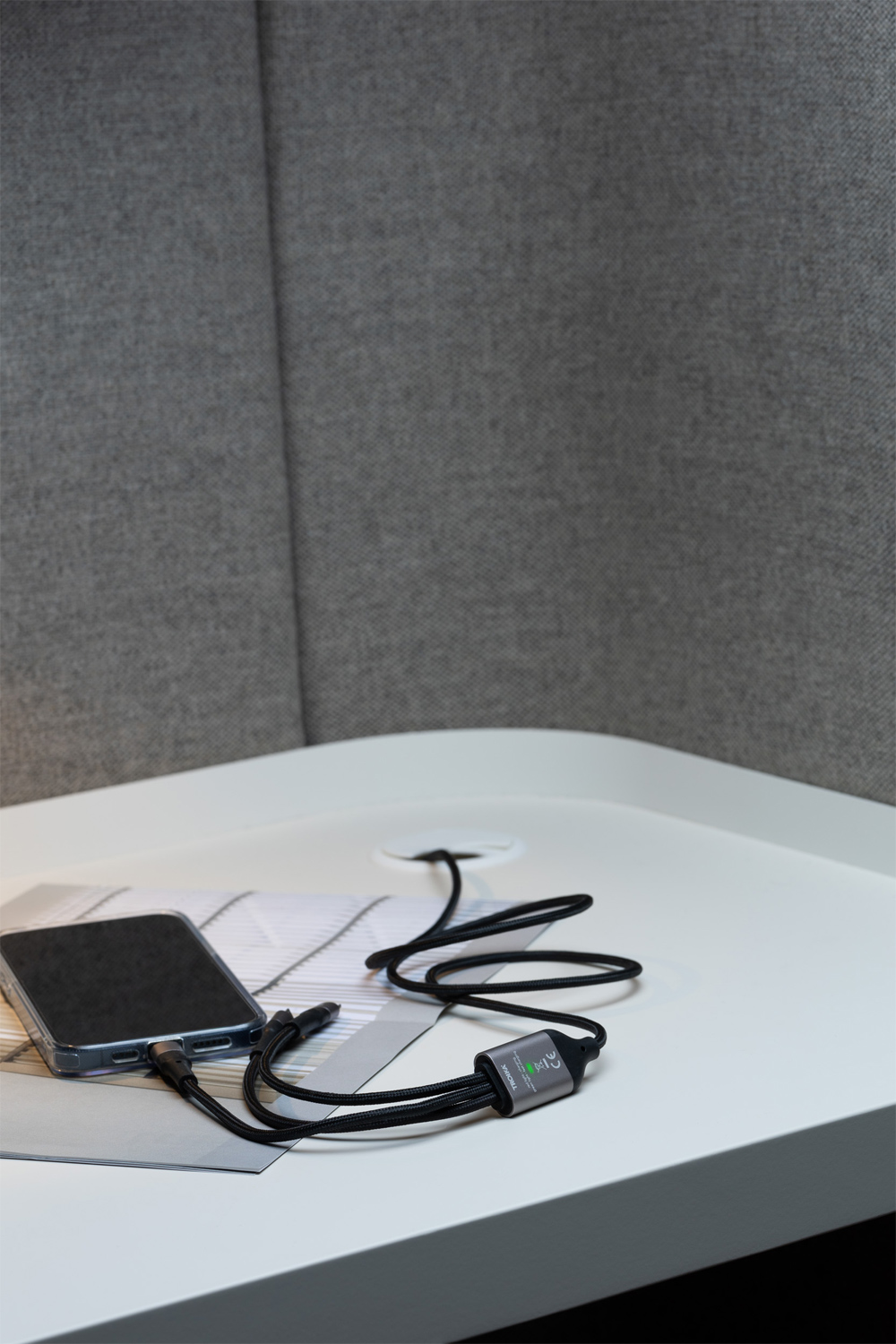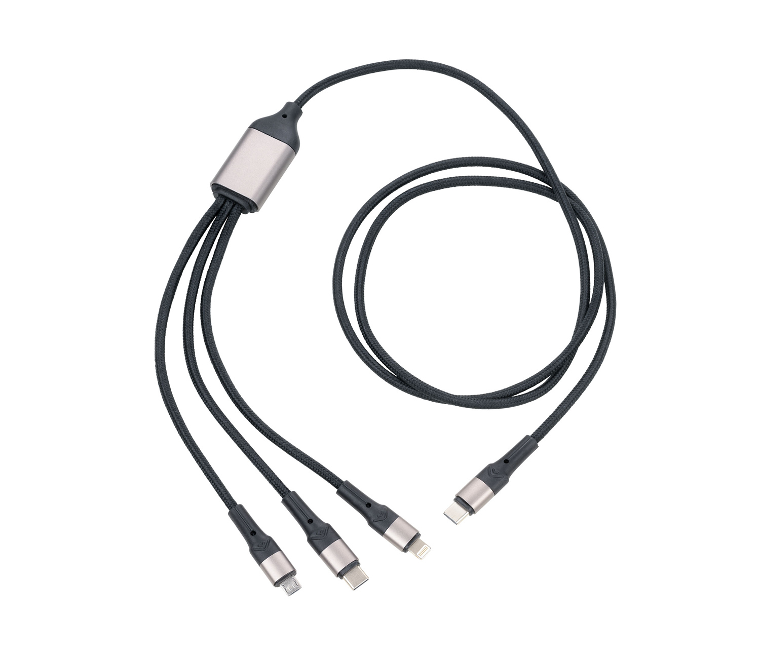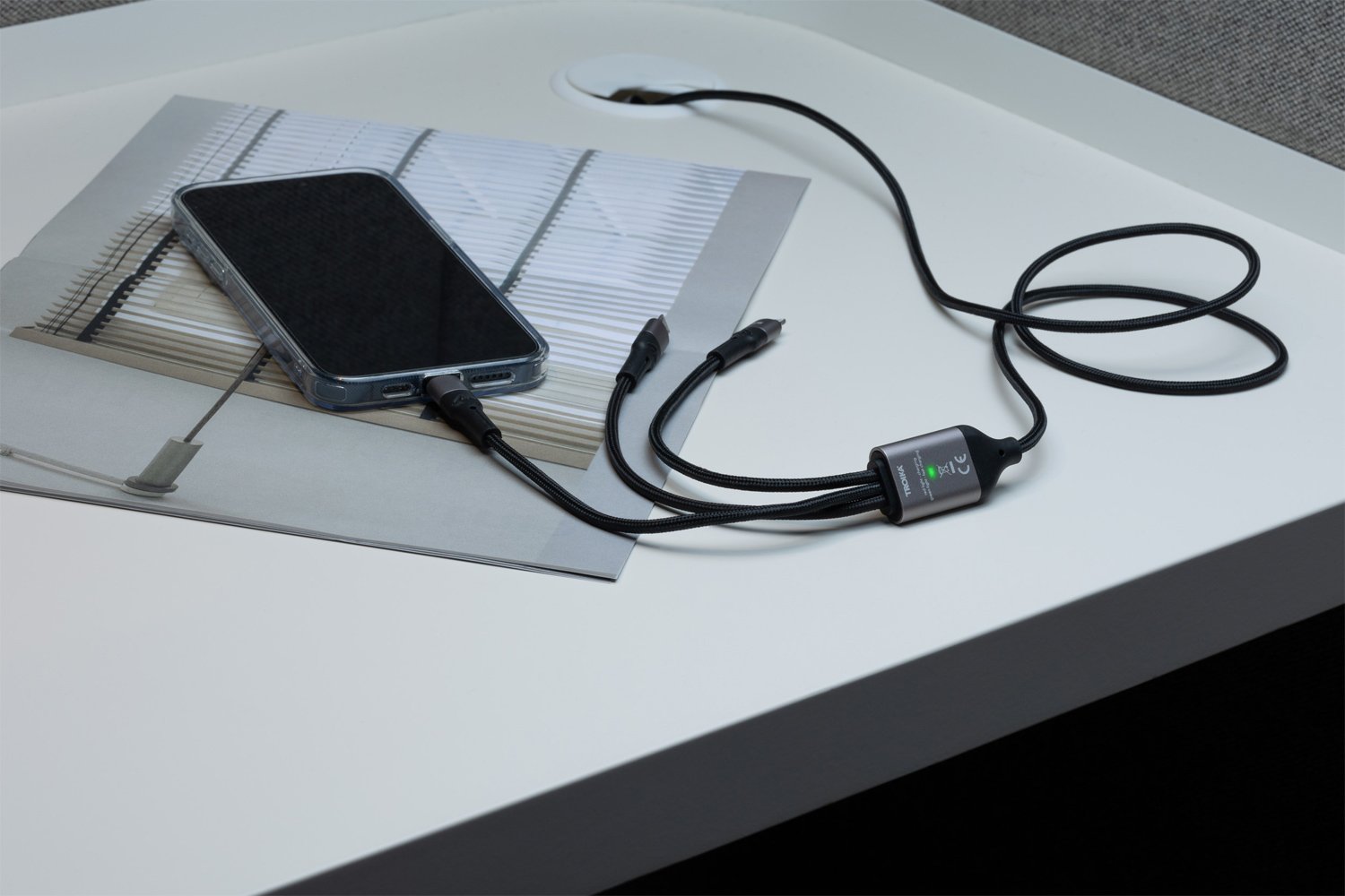 Schnellladekabel 3 in 1 für gleichzeitiges Laden von bis zu 3 Geräten, USB-C auf Micro-USB/Lightning/USB-C, mit Datenübertragungsfunktion, Kabellänge 1,23m.