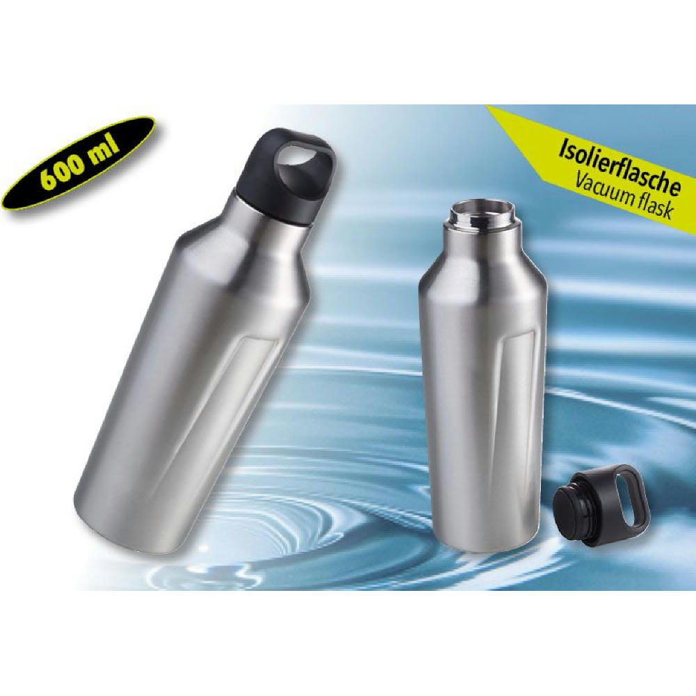 Thermosflasche Doppelwand-Isolierung mit Vakuum 600 ml, lebensmittelecht matt, silber- oder titanfarben
