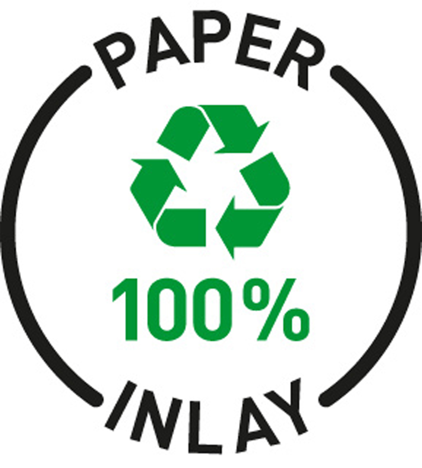 Vollkartonhülle, weiß; Inlay:100 % Papier