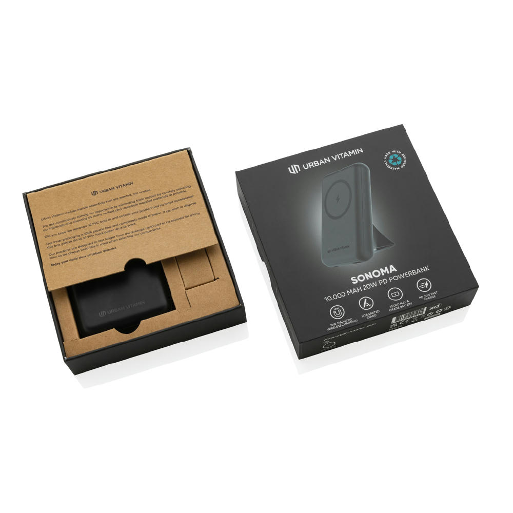 Laden Sie Ihr Telefon bis zu 2,5 Mal auf. USB: 5V/3,0A; Type-C: 5V/3,0A; 9V/2,22A; 12V/1,5A. Mit integriertem faltbaren Ständer der das Telefon aufrecht hält. Ultraschneller Type-C-PD-Anschluss, langlebigen A-Grade 10.000mAh Akku. Ein USB-A und der Type-C-Output ermöglichen das gleichzeitige Laden von bis zu 2 Geräten. Ohne PVC hergestellt und plastikreduziert verpackt.
