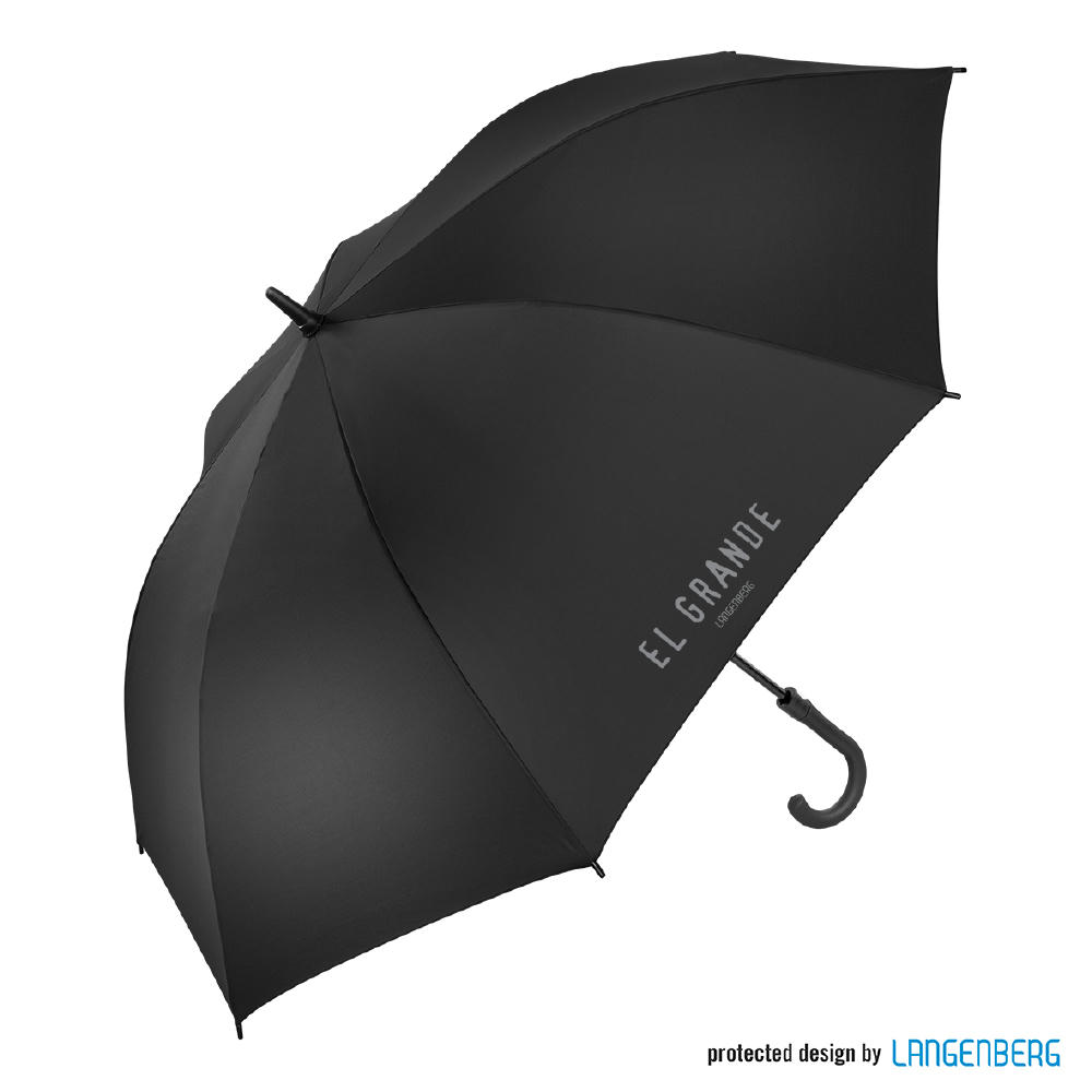 Dieser Regenschirm aus 190T RPET-Pongee hat einen Durchmesser von ca. 130 cm. Mit einer geschlossenen Länge von ca. 101 cm lässt er sich dank des Automatikmechanismus schnell öffnen. Der Schirm verfügt über 8 stabile Segmente, schwarze 65 cm lange Fiberglasspeichen und einen robusten 14 mm Fiberglasschaft. Der gebogene Rundgriff mit PU-Beschichtung in Schwarz sorgt für einen komfortablen Halt.