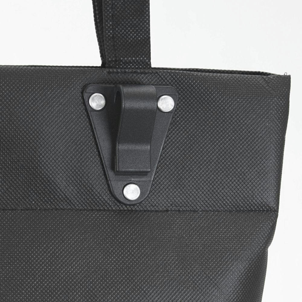 Faltbare Fahrradtasche mit Bodenfalte, Reißverschluss und im Kreuzstich vernähten Henkeln. Hergestellt aus recycelten PET-Flaschen.