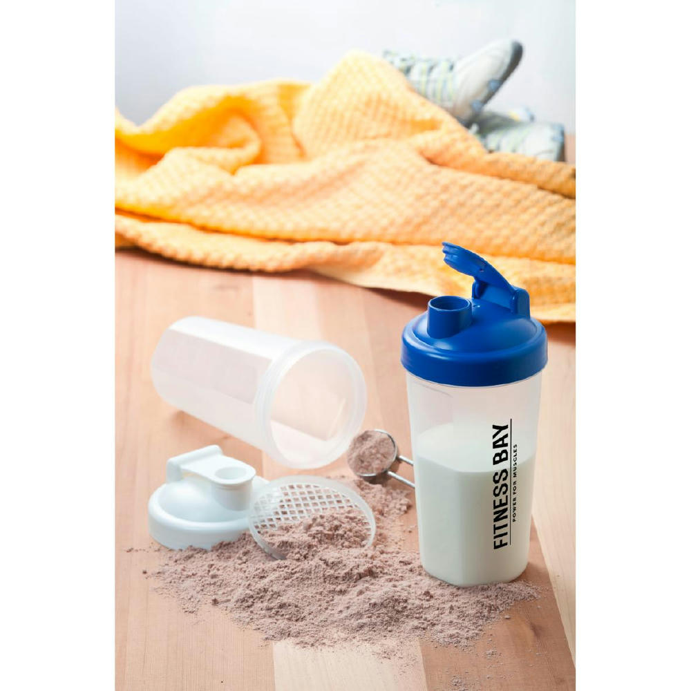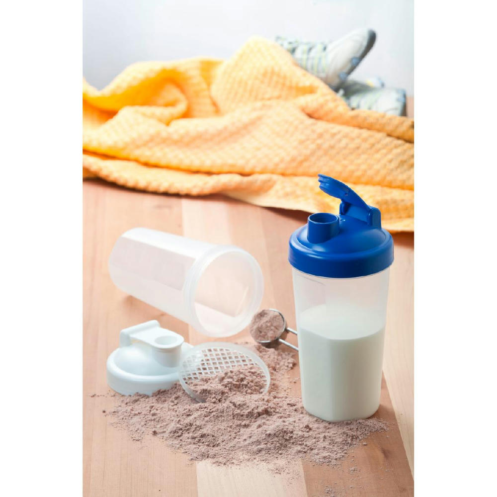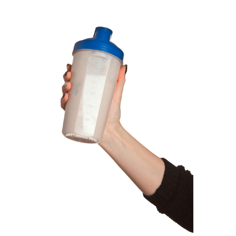 Nach dem Training einen Eiweiß-Shake zubereiten. Dieser transparente Shaker mit geprägter Skala in 50 ml Schritten und Schraubdeckel mit verschließbarer Trinköffnung beinhaltet ein herausnehmbares Sieb, mit dem sich Shakepulver und Flüssigkeit bei gutem Schütteln optimal vermischen. Der Mix-Becher lässt sich komplett auseinandernehmen und somit gut reinigen. Füllmenge: 0,6 Liter.