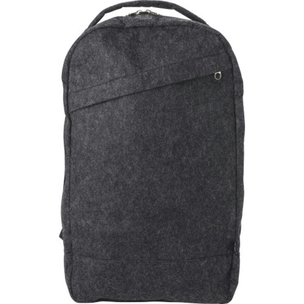 rPET-Filzrucksack mit einem großen und einem kleinen Fach, das mit einem Reißverschluss geschlossen werden kann.