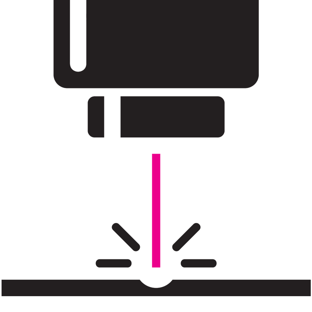 So funktioniert’s: Der gebündelte Laserstrahl erhitzt die Produktoberfläche punktuell so stark, dass das Material zum Teil verdampft oder schmilzt. So wird häufig auch eine oberste Farb- oder Materialschicht abgetragen. Daraus resultiert eine mehr oder weniger starke Vertiefung.