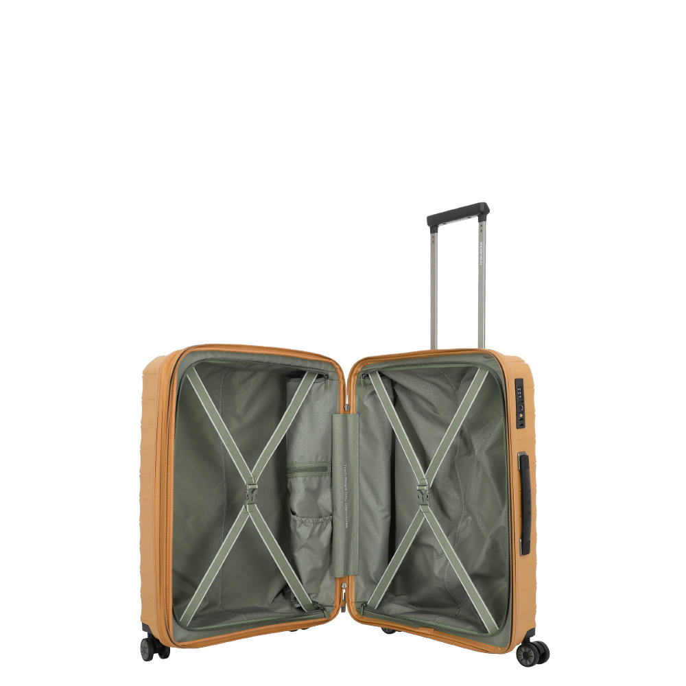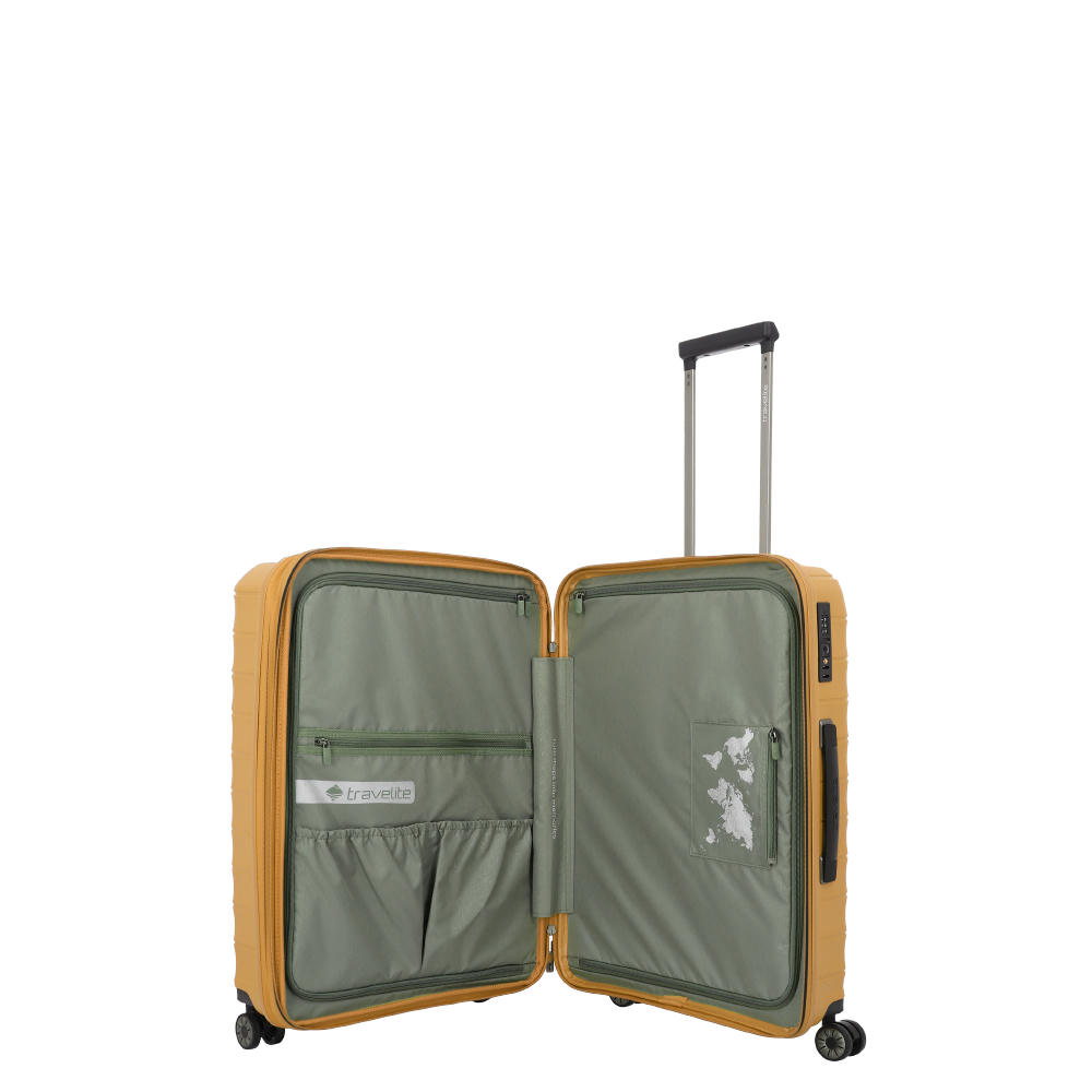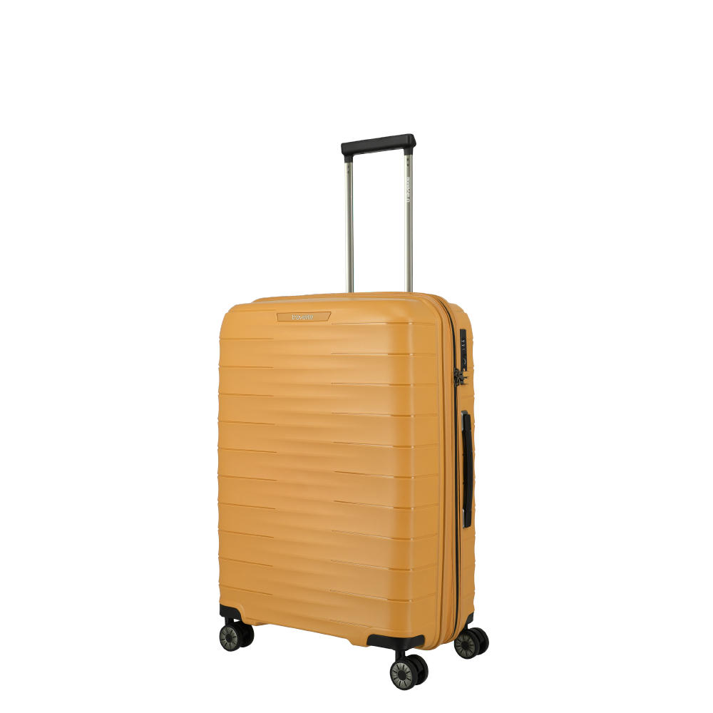 Mittlere Größe. Aber große Klasse. Ob privat oder beruflich: Der mittelgroße Trolley aus der Produktserie Mooby ist eine exzellente Wahl für nahezu jede mehrtägige Reise, alleine oder zu zweit. Sein Design ist zeitlos, seine Oberfläche kratzresistent und nachhaltig gefertigt aus recyceltem Polypropylen. Auch die inneren Werte überzeugen: Der Trolley M verfügt über praktische Packgurte, eine Packwand mit einem Reißverschluss-Fach, sowie viele weitere nützliche Details.